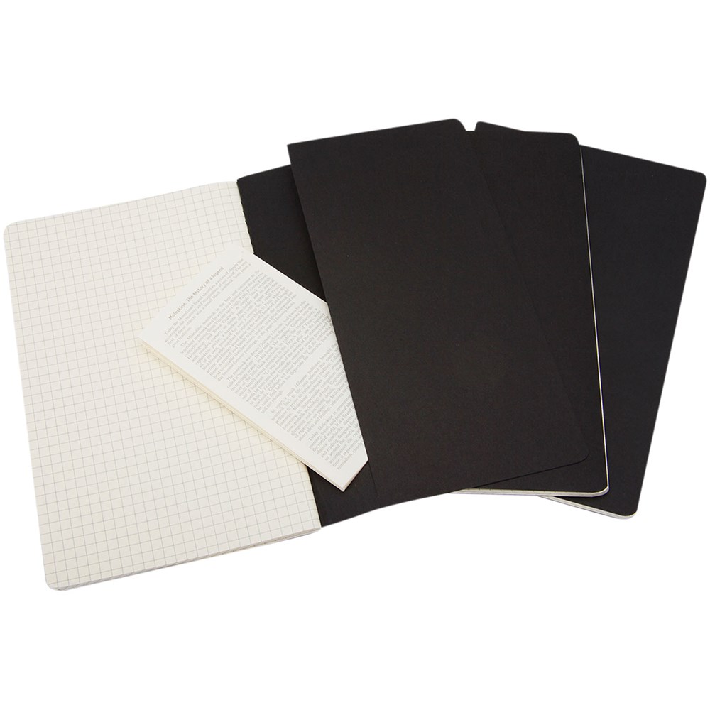 Mit Cover aus Karton mit abgerundeten Ecken. Sichtbare Nähte auf dem Rücken, mit Innentasche zum Sammeln von losen Notizen. Enthält 80 70 g/m², elfenbeinfarbene, karierte Seiten. Die letzten 16 Blätter sind heraustrennbar. Die Seiten sind auch mit liniertem, gepunktetem und unbedrucktem Papier erhältlich.