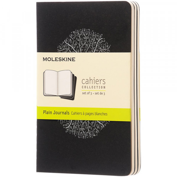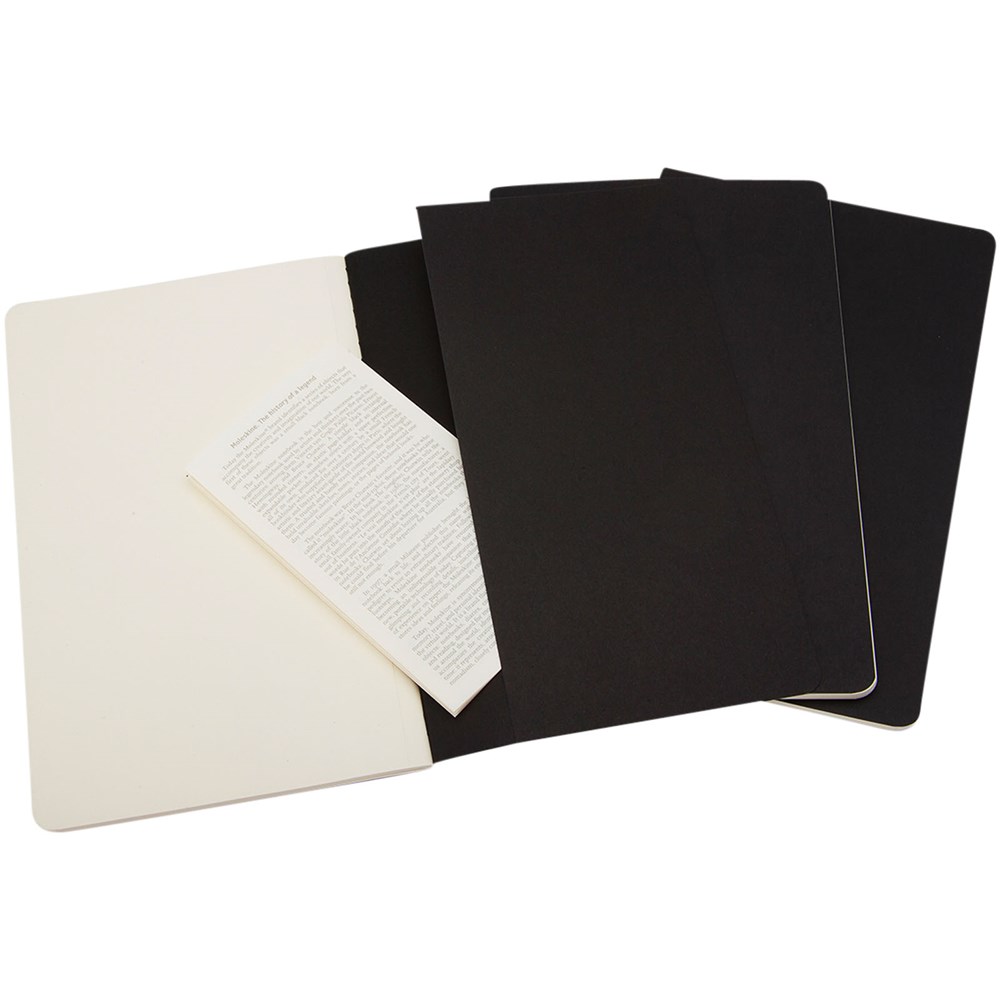 Mit Cover aus Karton mit abgerundeten Ecken. Sichtbare Nähte auf dem Rücken, mit Innentasche zum Sammeln von losen Notizen. Enthält 64 70 g/m², elfenbeinfarbene, unbedruckte Seiten. Die letzten 16 Blätter sind heraustrennbar. Die Seiten sind auch mit liniertem, gepunktetem und kariertem Papier erhältlich.
