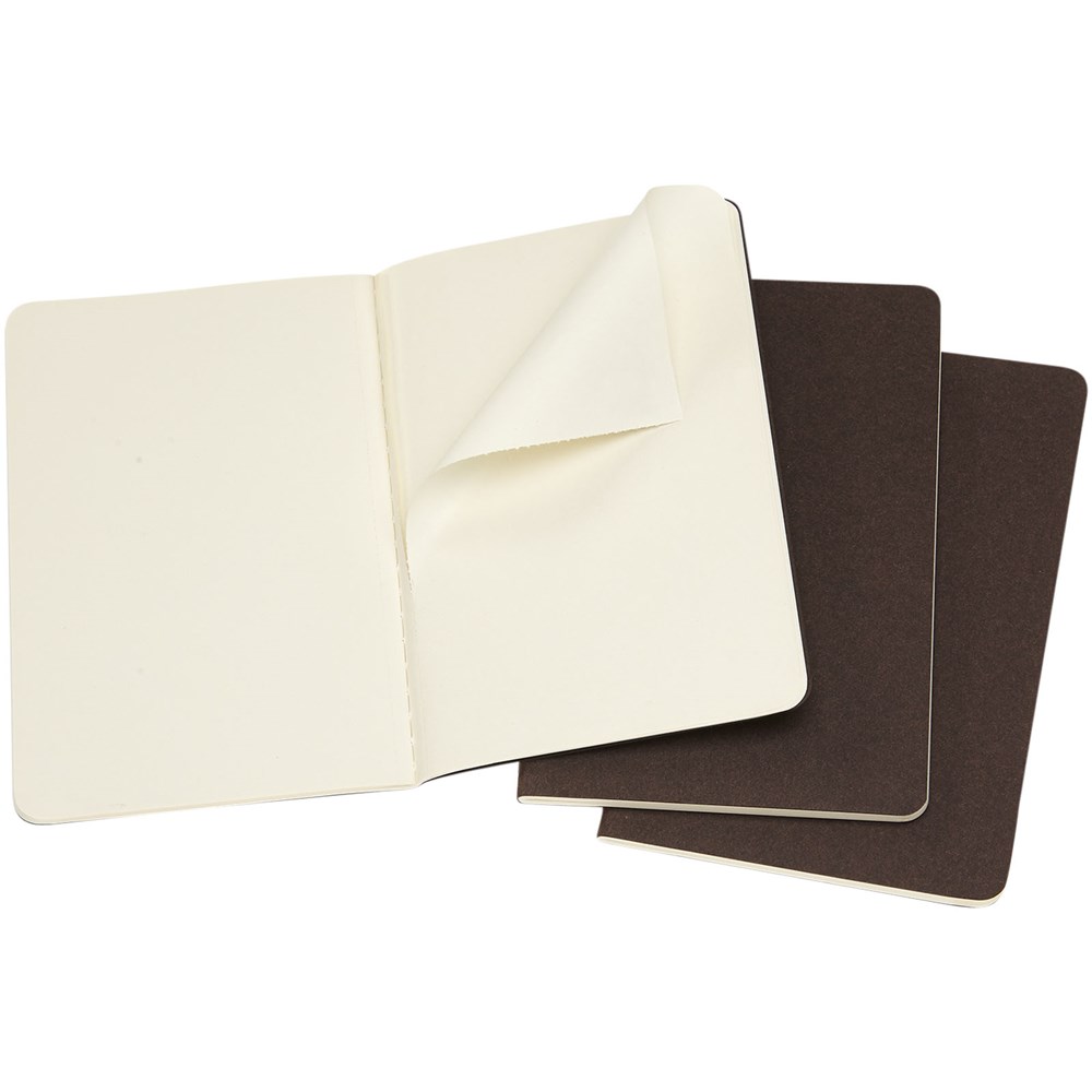 Mit Cover aus Karton mit abgerundeten Ecken. Sichtbare Nähte auf dem Rücken, mit Innentasche zum Sammeln von losen Notizen. Enthält 64 70 g/m², elfenbeinfarbene, unbedruckte Seiten. Die letzten 16 Blätter sind heraustrennbar. Die Seiten sind auch mit liniertem, gepunktetem und kariertem Papier erhältlich.