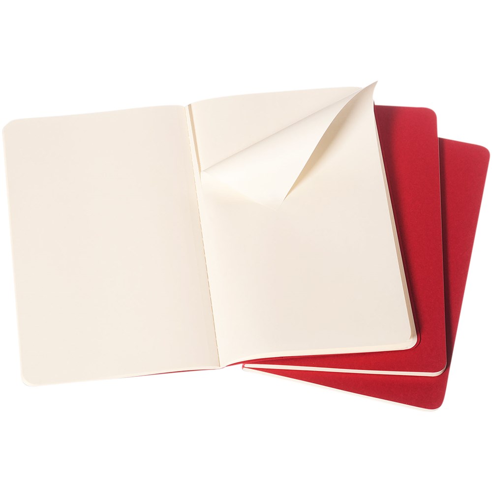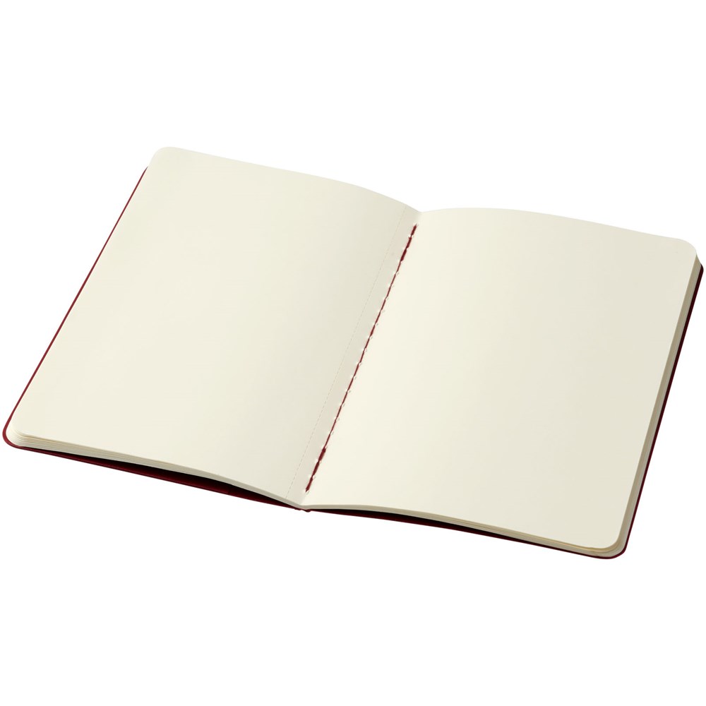 Mit Cover aus Karton mit abgerundeten Ecken. Sichtbare Nähte auf dem Rücken, mit Innentasche zum Sammeln von losen Notizen. Enthält 64 70 g/m², elfenbeinfarbene, unbedruckte Seiten. Die letzten 16 Blätter sind heraustrennbar. Die Seiten sind auch mit liniertem, gepunktetem und kariertem Papier erhältlich.