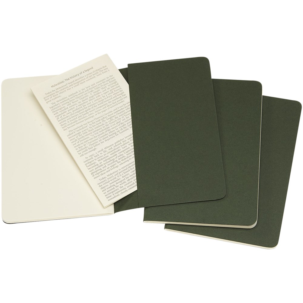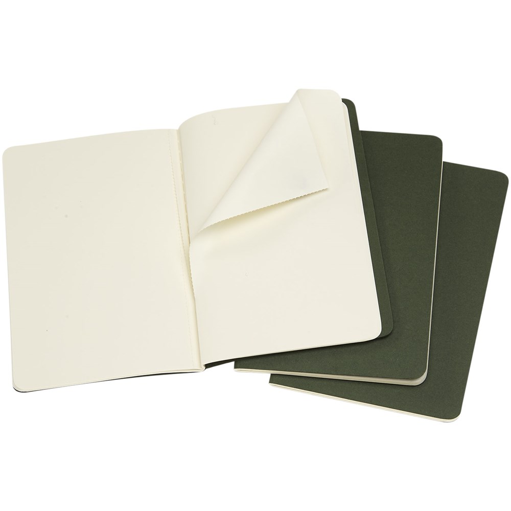 Mit Cover aus Karton mit abgerundeten Ecken. Sichtbare Nähte auf dem Rücken, mit Innentasche zum Sammeln von losen Notizen. Enthält 64 70 g/m², elfenbeinfarbene, unbedruckte Seiten. Die letzten 16 Blätter sind heraustrennbar. Die Seiten sind auch mit liniertem, gepunktetem und kariertem Papier erhältlich.