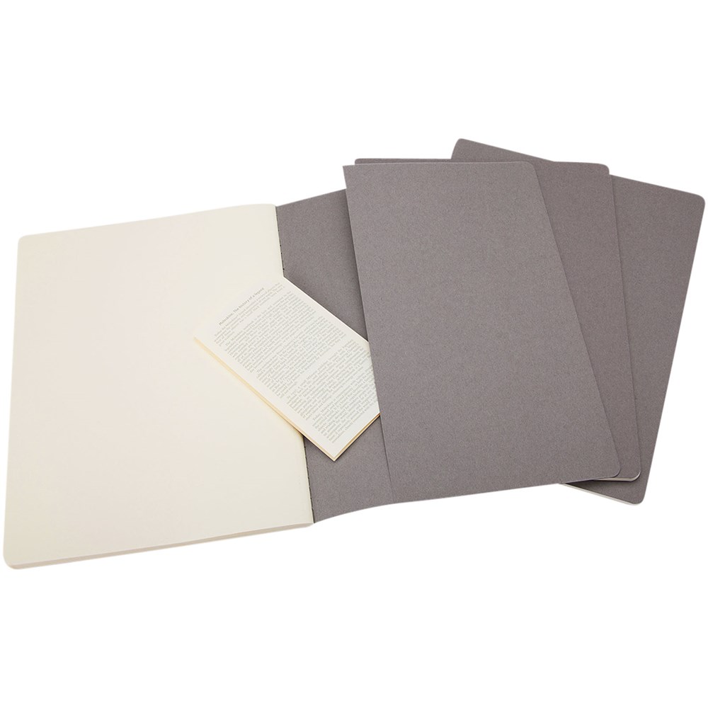 Mit Cover aus Karton mit abgerundeten Ecken. Sichtbare Nähte auf dem Rücken, mit Innentasche zum Sammeln von losen Notizen. Enthält 120 70 g/m², elfenbeinfarbene, unbedruckte Seiten. Die letzten 16 Blätter sind heraustrennbar. Die Seiten sind auch mit liniertem, gepunktetem und kariertem Papier erhältlich.