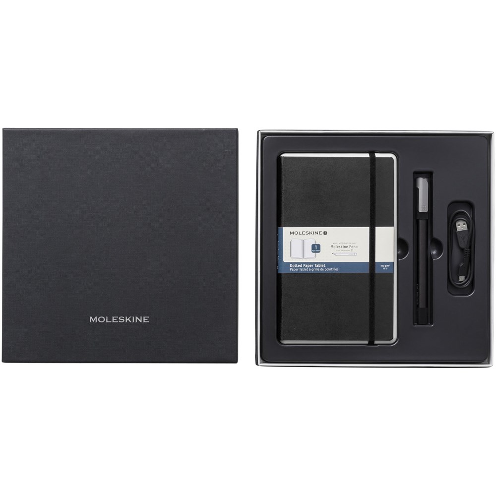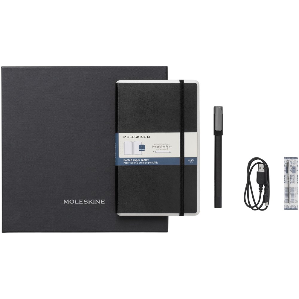 Das Smart Schreibset Ellipse enthält den Pen + Ellipse-Smartpen und ein großes liniertes Paper Tablet mit speziellem Ncoded-Papier. Schreiben Sie mit der Moleskine Notes App einfach mit Pen + Ellipse auf die Seiten des Paper Tablets, um augenblicklich digitalisierte Notizen zu erhalten, die auf dem Gerät Ihrer Wahl bearbeitet, abgeschrieben, organisiert oder weitergeleitet werden können. Im Lieferumfang enthalten: Paper Tablet mit Spezialpapier, entwickelt für die Arbeit mit Pen+ im linierten Layout, Pen+ Ellipse Smartpen, USB-Kabel, um den Smartpen wieder aufzuladen, 1 Tinten-Ersatzmine, Volant XS Starter Journal und Benutzerhandbuch. Das Smart Schreibset Ellipse ist mit allen anderen Moleskine Paper Tablets und Smart Kalendern/Planern kompatibel.