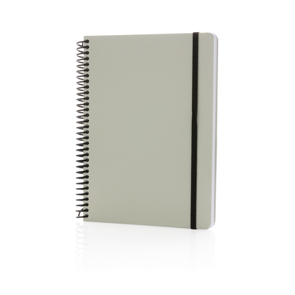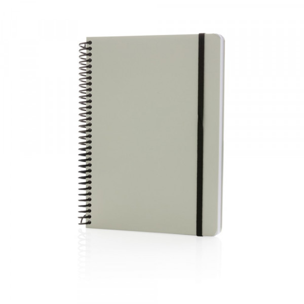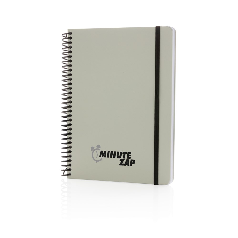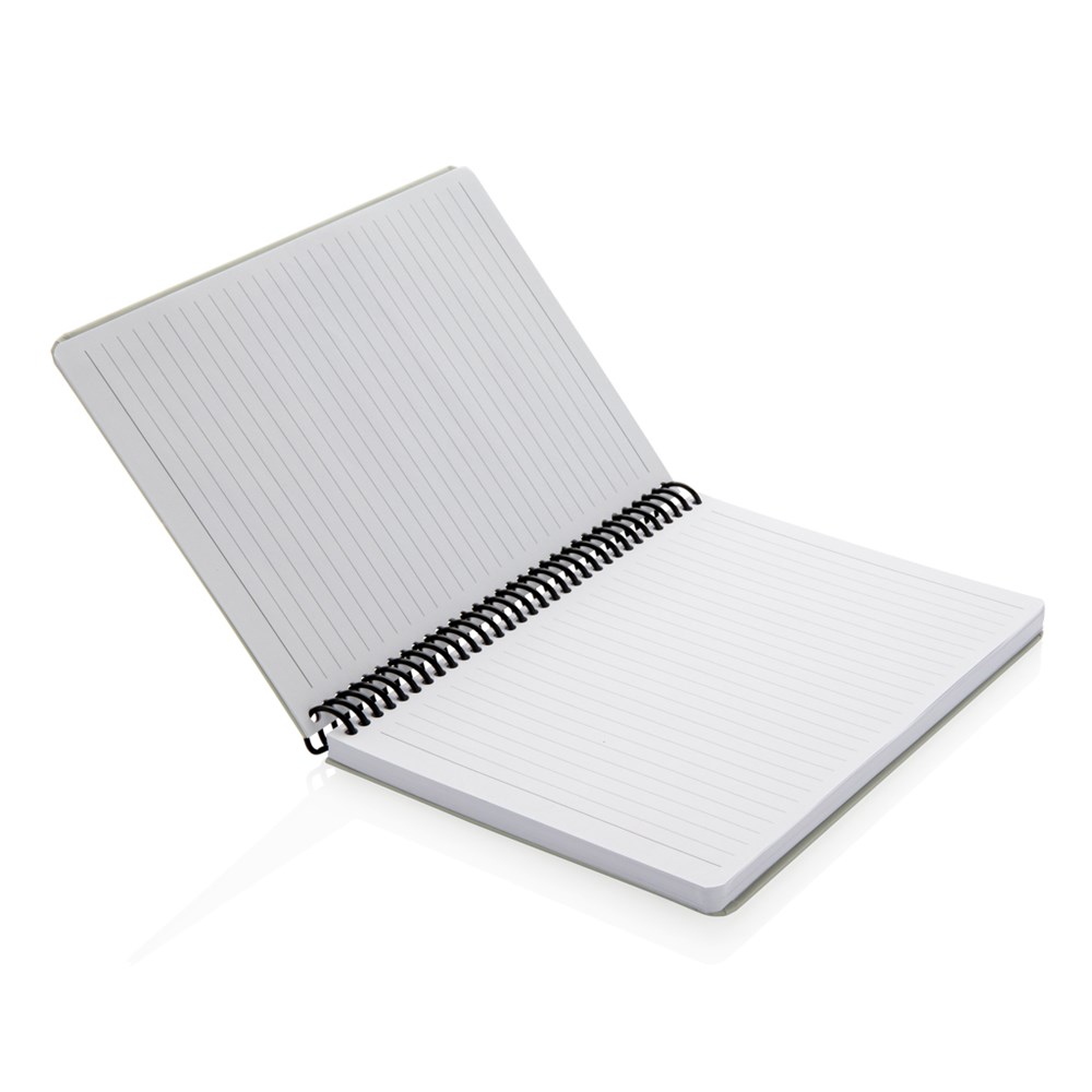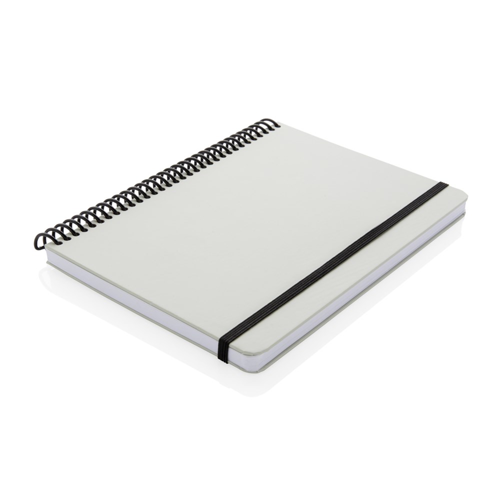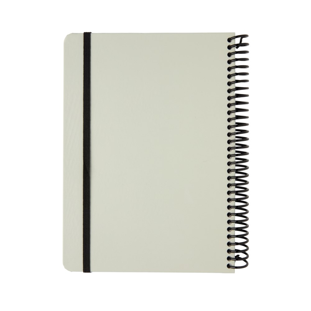 Deluxe A5 Notizbuch mit farbiger Spiralbindung und elastischem Band. Mit 80 Blättern/160 weißen, linierten Seiten 70g/qm