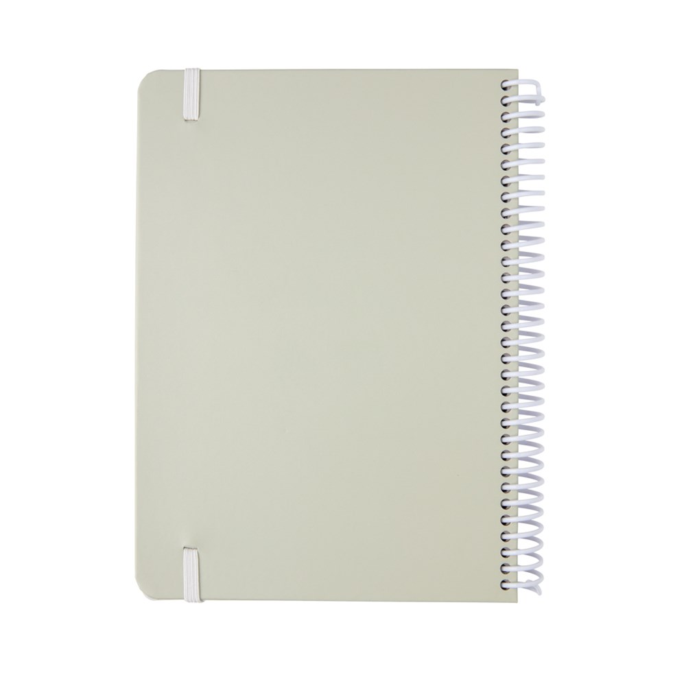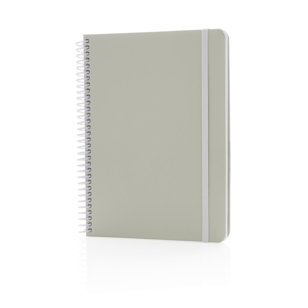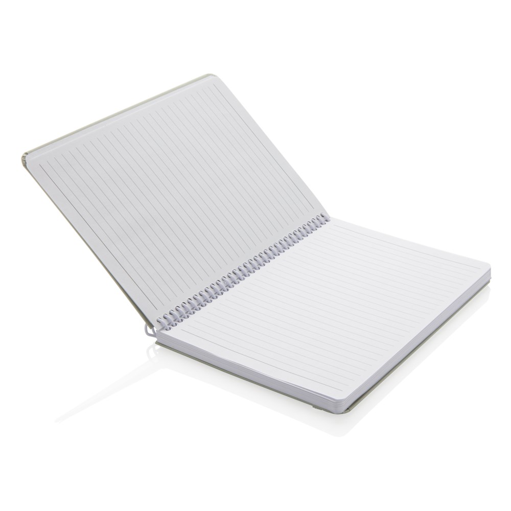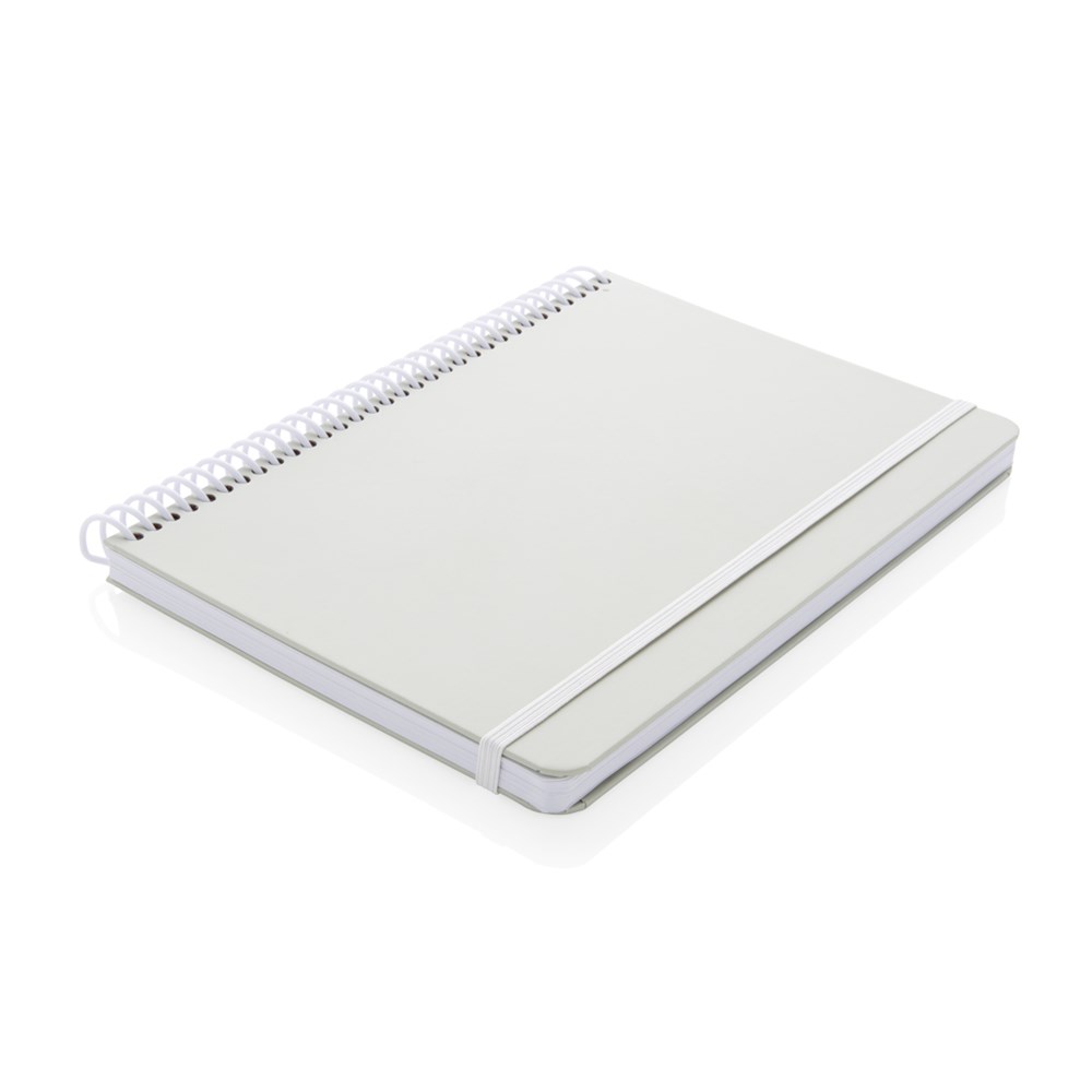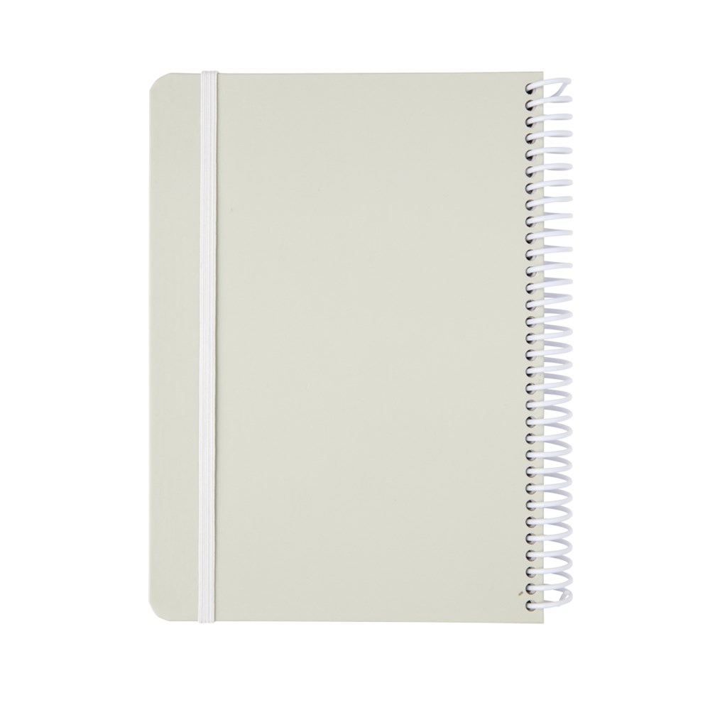 Deluxe A5 Notizbuch mit farbiger Spiralbindung und elastischem Band. Mit 80 Blättern/160 weißen, linierten Seiten 70g/qm