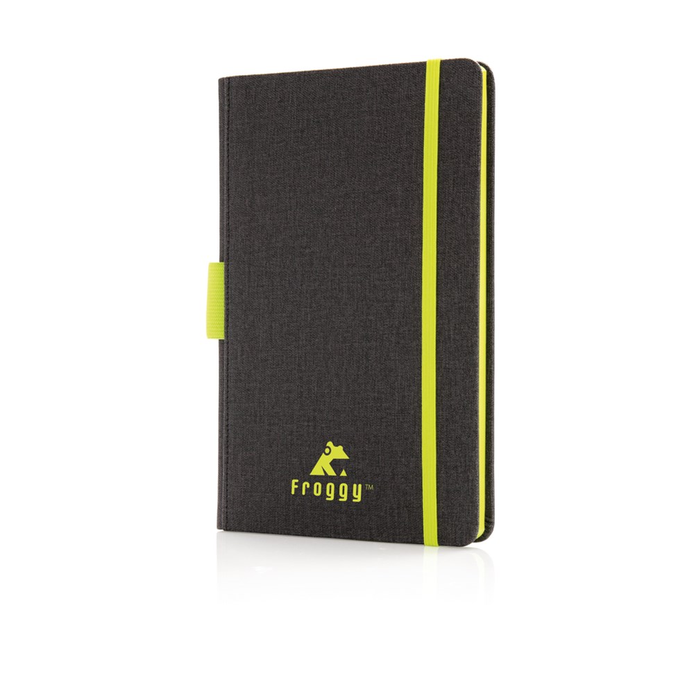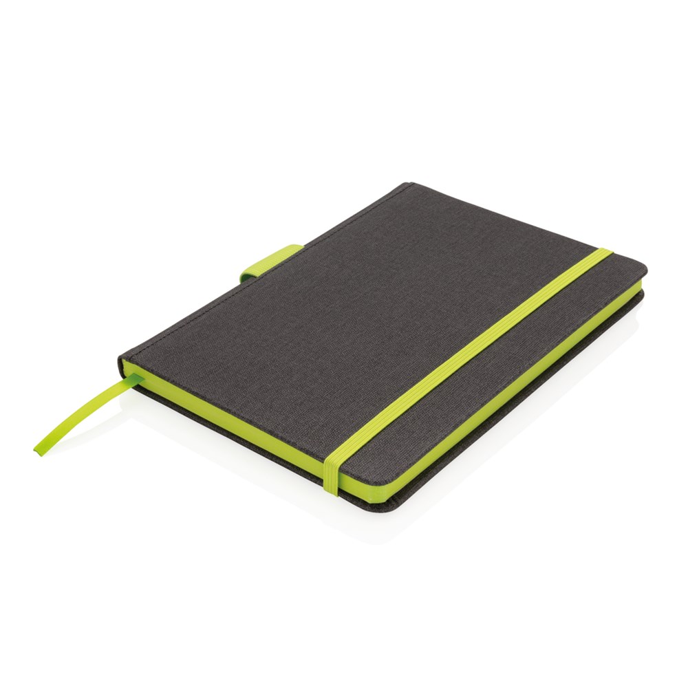 Dunkelgraues A5 Notizbuch mit coloriertem Rand, elastischem Verschlußband, Seitentrenner und schickem Stiftehalter. 80 Blätter/160 cremefarbene, linierte Seiten - 78gr/m2