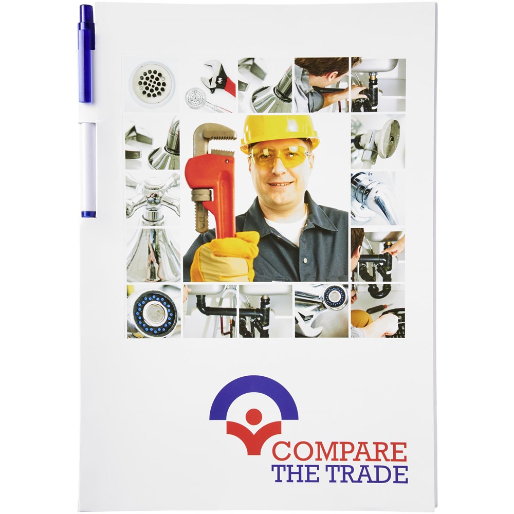 Essential Conference Pack A4. Enthält ein A4-Notizbuch mit 50 Blatt Blankopapier (80 g/m2) sowie einen Calypso-Stift am Buchrücken. Das Conference Pack ist mit einem festen Umschlag (350 g/m2) ausgestattet. Eine vollfarbige Dekoration auf beiden Seiten des Umschlags sowie auf jedem Blatt ist möglich.