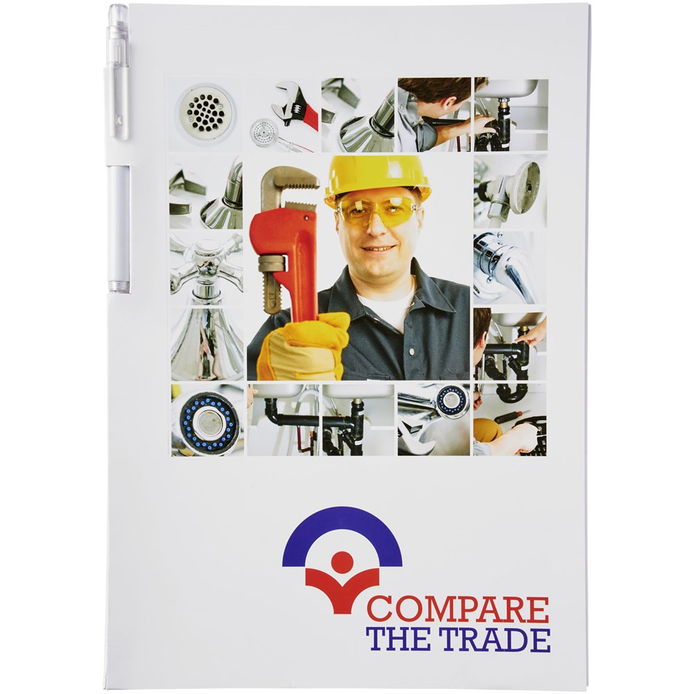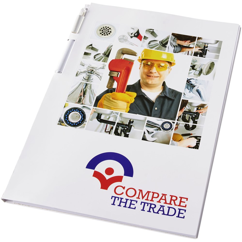 Essential Conference Pack A4. Enthält ein A4-Notizbuch mit 50 Blatt Blankopapier (80 g/m2) sowie einen Calypso-Stift am Buchrücken. Das Conference Pack ist mit einem festen Umschlag (350 g/m2) ausgestattet. Eine vollfarbige Dekoration auf beiden Seiten des Umschlags sowie auf jedem Blatt ist möglich.