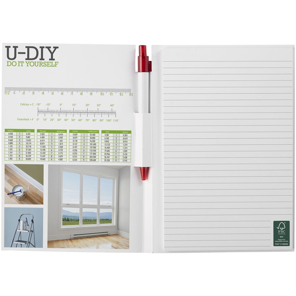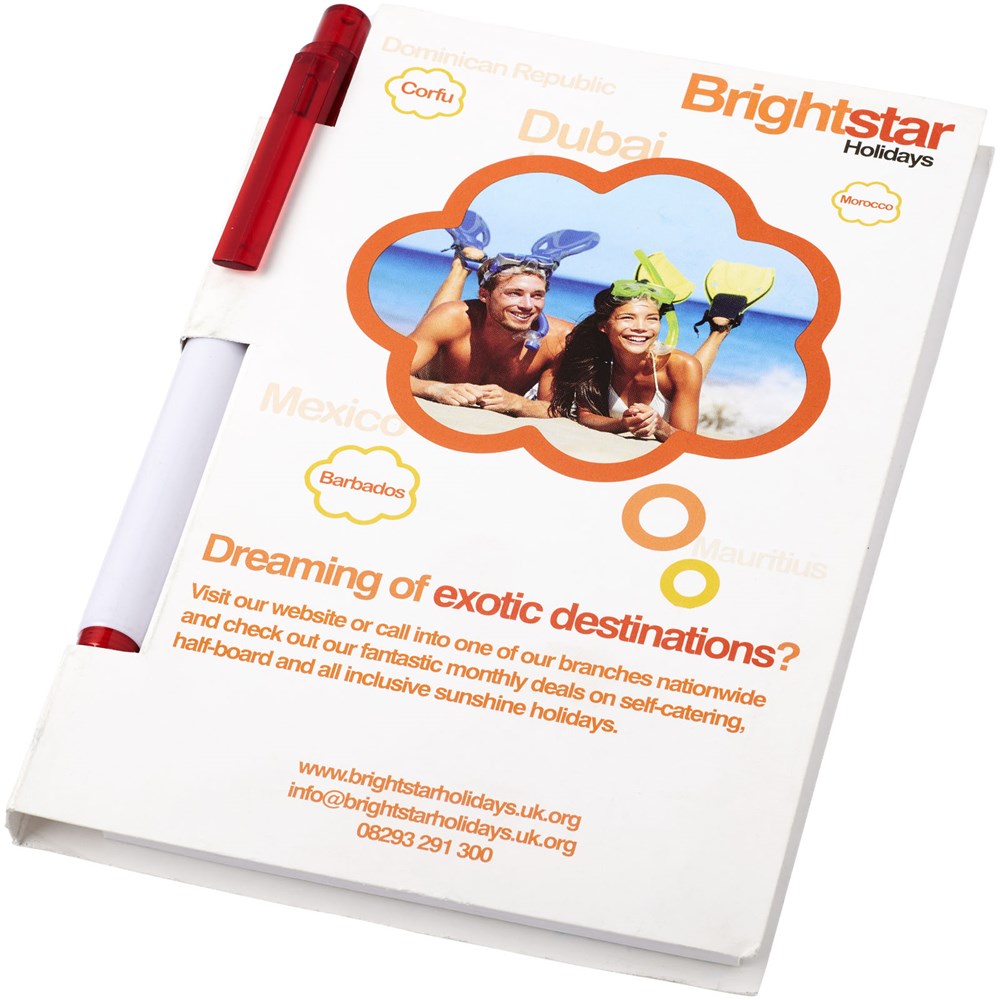 Essential Conference Pack A5. Enthält ein A5-Notizbuch mit 50 Blatt Blankopapier (80 g/m2) sowie einen Calypso-Stift am Buchrücken. Das Conference Pack ist mit einem Softcover (350 g/m2) ausgestattet. Vollfarbdruck auf beiden Seiten des Umschlags sowie auf jedem Blatt möglich.