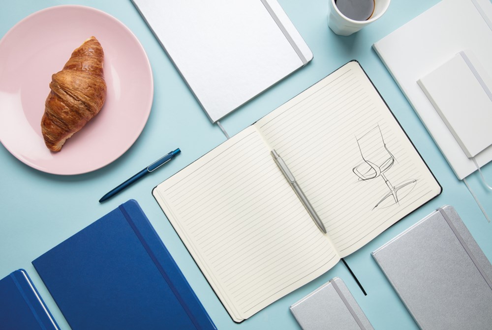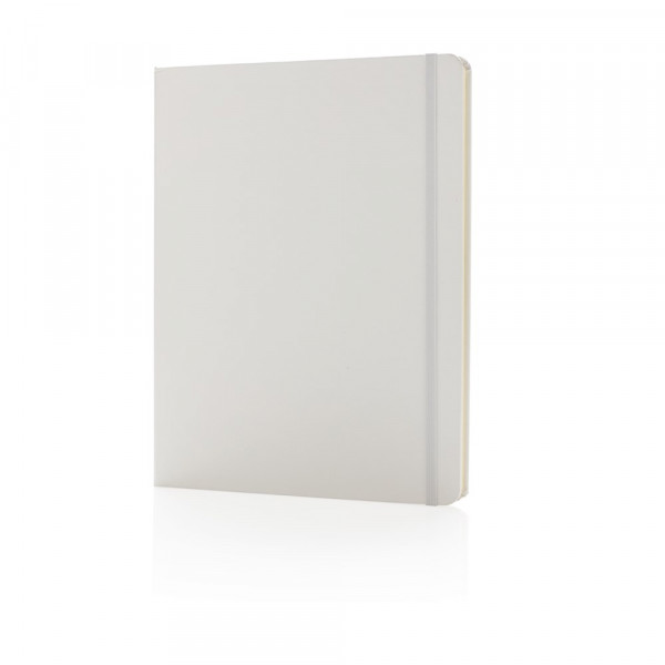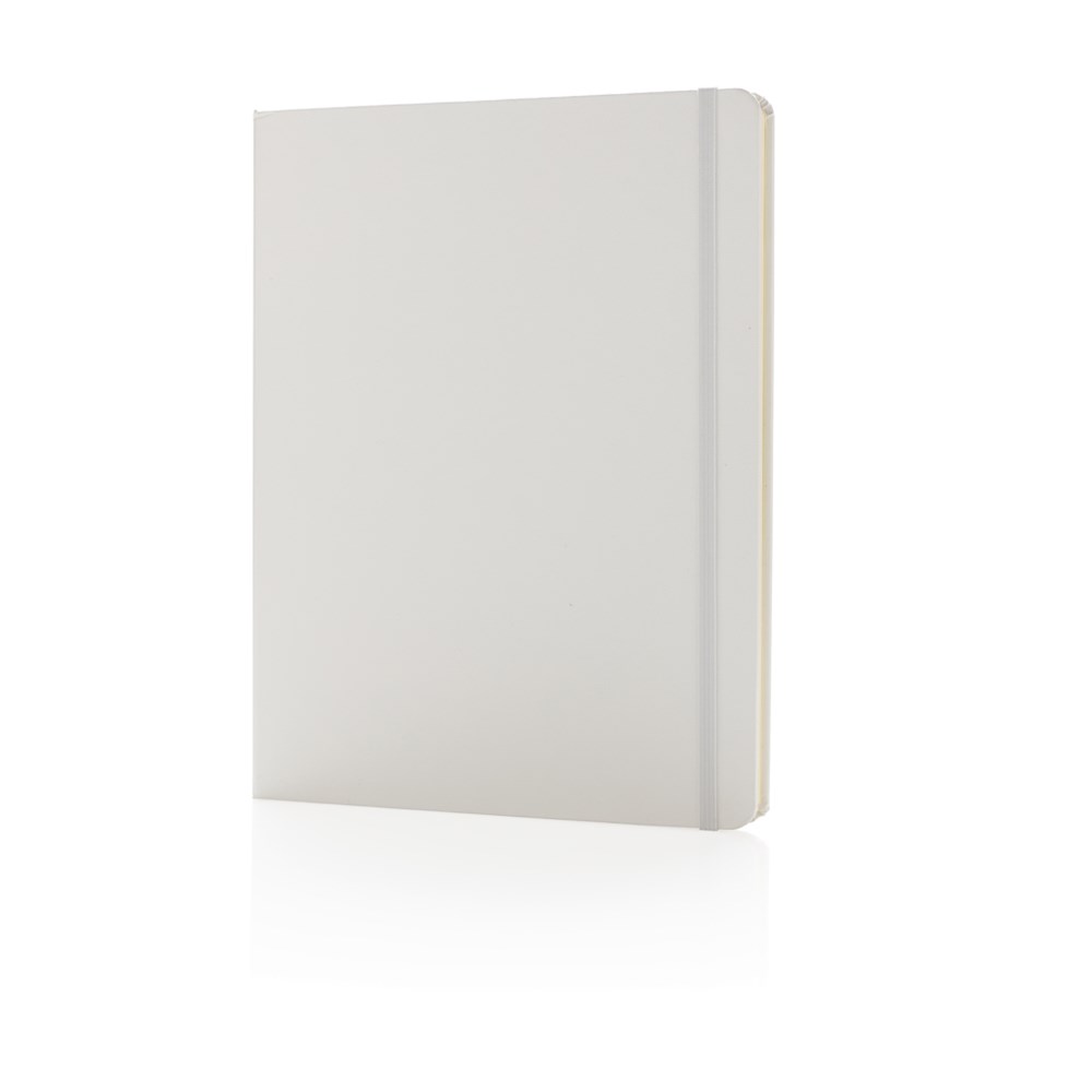 Liniertes Hardcover Notizbuch mit elastischem Verschlußband und Seitentrenner im B5 Format, 19x25cm. 144 cremefarbene Seiten, 70g/qm