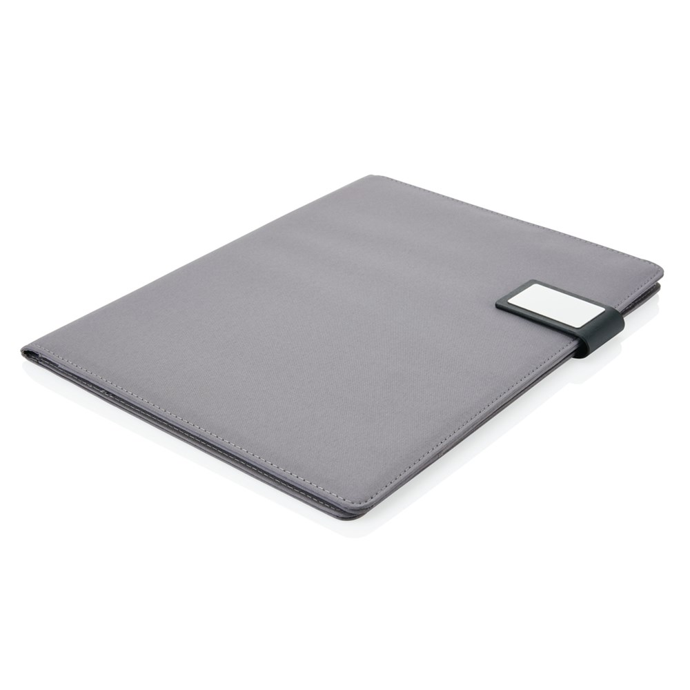 A4 Tech Portfolio mit luxuriösem, magnetischem Metallverchluss. Im Inneren befindet sich ein Tablet-/Handyhalter mit transparentem Fenster, über dieses Sie Ihr mobiles Gerät im Auge behalten und bedienen können. Passend für alle herkömmlichen Handys, u.a. iPhone 6 & Samsung S6. Inkl. Dokumentenhülle, 2 Kartenhaltern, Stifteschlaufe und 1 A4 Notizblock mit 20 Blättern.
