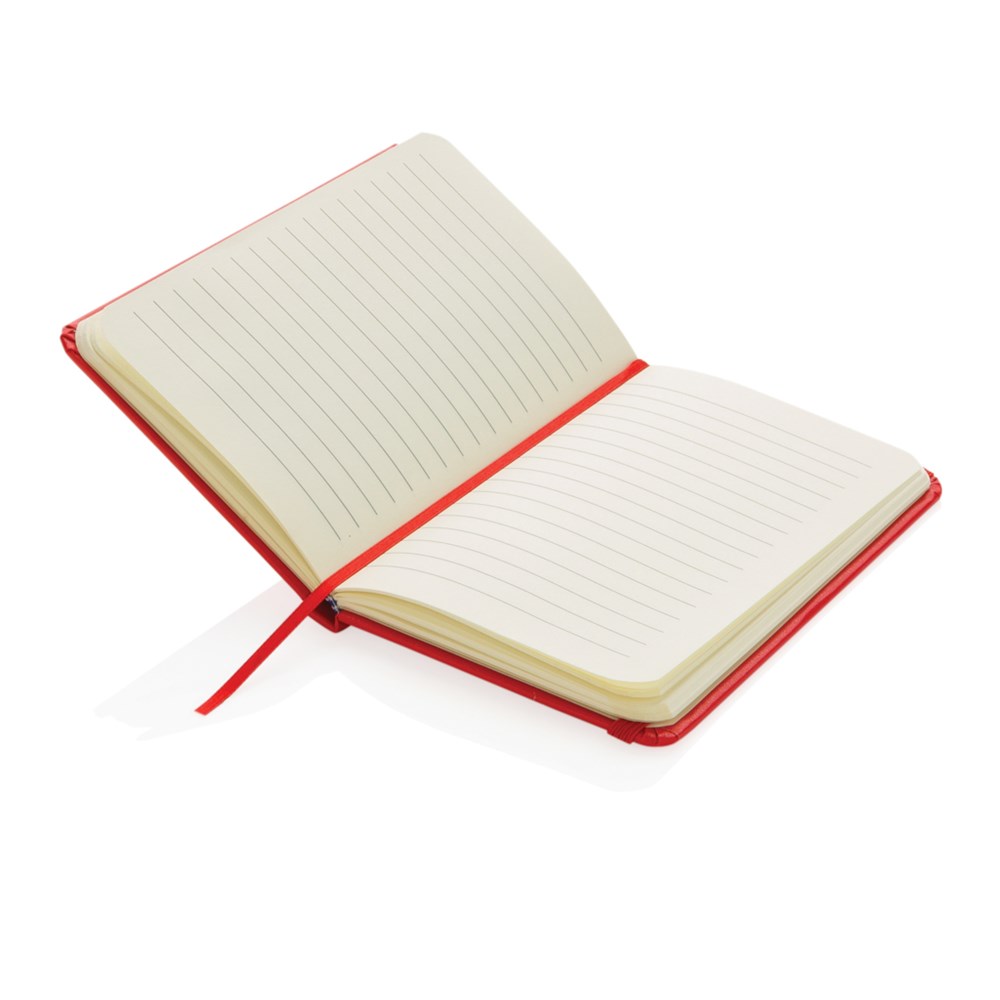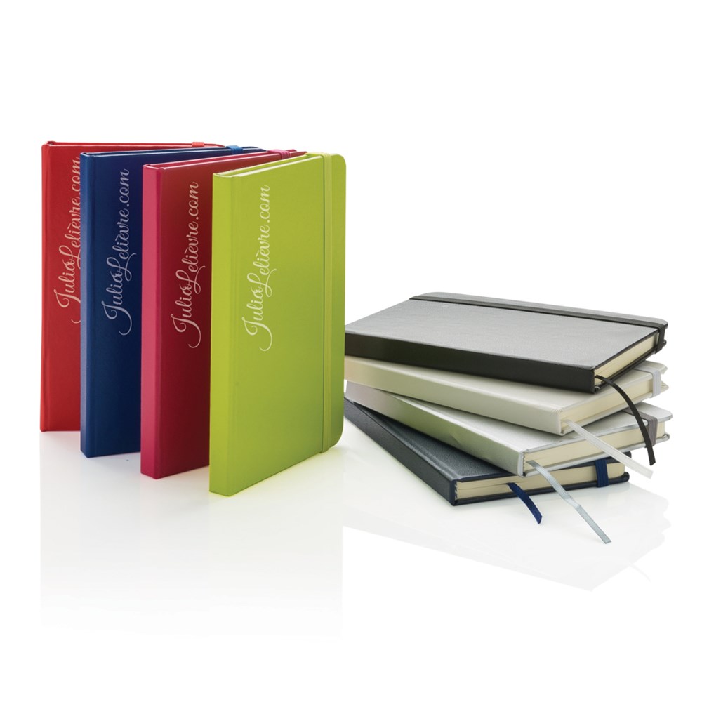 Liniertes Hardcover Notizbuch A6 mit Seitentrenner und elastischem Verschlussband. 160 Seiten, 70g/m² - creme-farbene Seiten