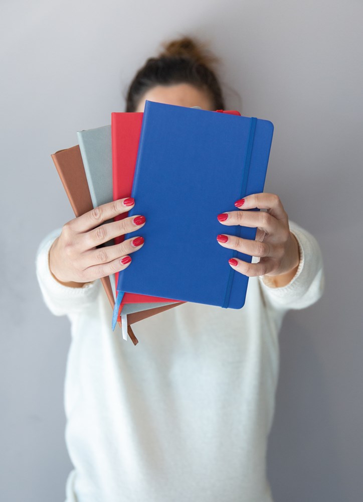 Notizbuch mit PU Einband, 160 linierte Seiten, 80g/m² Papier.