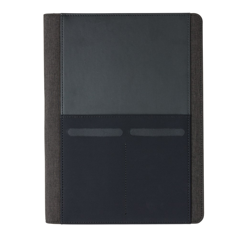 A4 Portfolio mit 2 Fronttaschen und großem Front-Sleeve. Im Inneren mit Dokumentenfach, 4 Kartenfächern und Stiftschlaufe. Inkl. A4 Schreibblock.