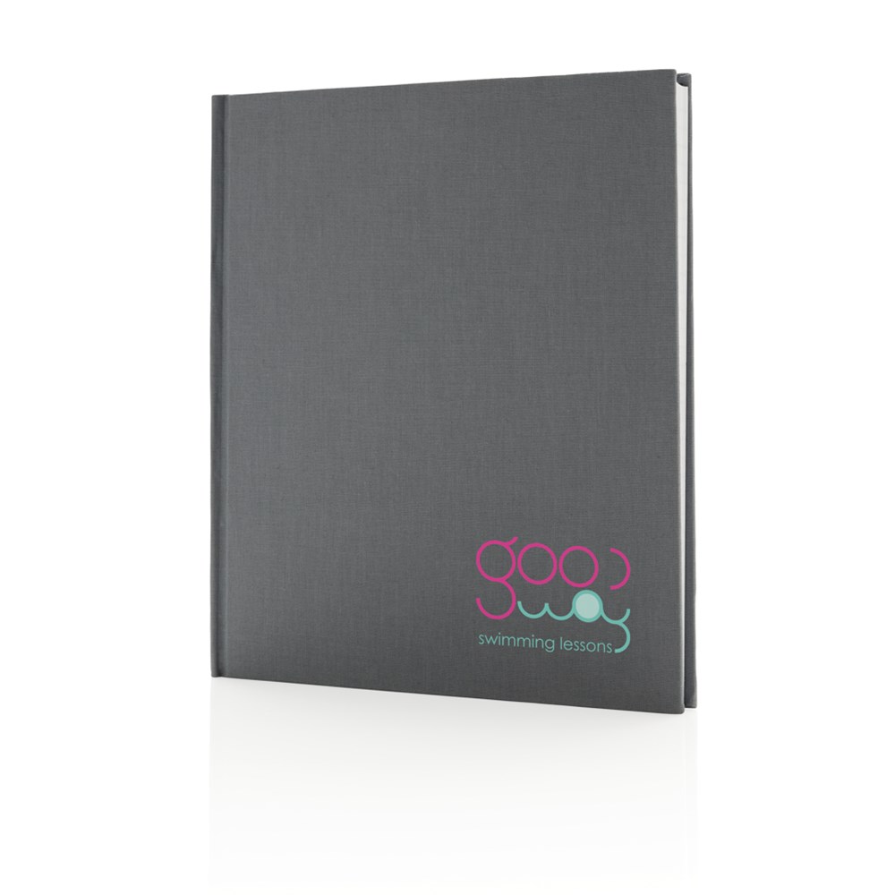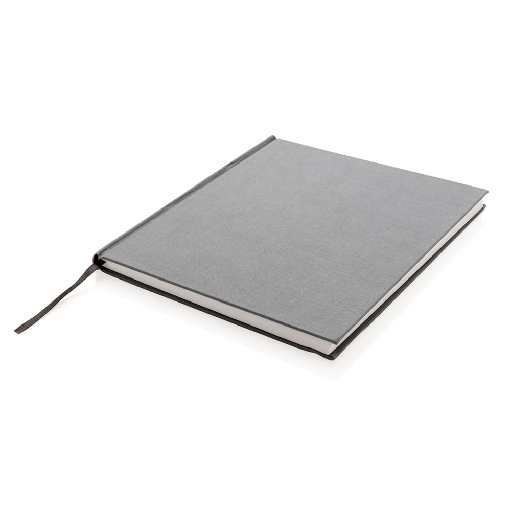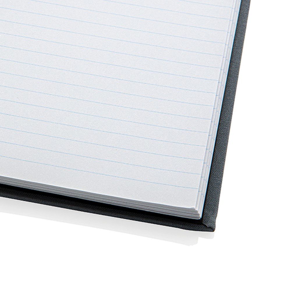 Deluxe Notizbuch mit stoffbezogenem Cover. 96 Blätter / 192 Seiten weißes, liniertes Papier 80g/m2. Mit Seitentrenner.