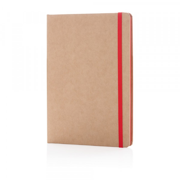 Notizbuch mit recyceltem Papier und einem Cover aus recycelter Pappe. Das Notizbuch verfügt über ein elastisches Verschlussband und ein Lesezeichenband. 72 Blätter /144 Seiten mit crèmefarbenem, liniertem 70g/m2 Papier.