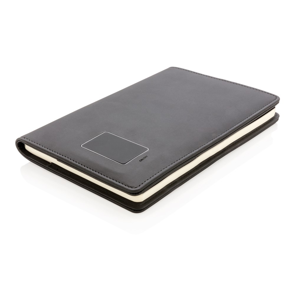 Dieses Notizbuch verfügt über ein Licht auf dem Cover, welches Ihnen ermöglicht Ihr Logo optimal zur Geltung zu bringen. Einzigartig und definitiv ein Eye-catcher! Inklusive 2 CR2032 Batterien und herausnehmbaren Notizbuch mit 128 Seiten, cremefarbenes, liniertes Papier 80g/m2.