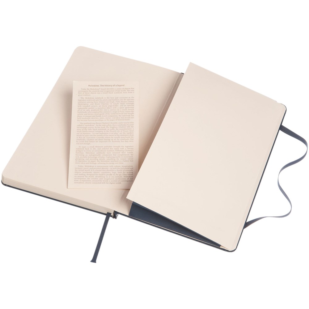 Das Moleskine Classic Hardcover Notizbuch in Größe L (13x21 cm) hat einen kartongebundenen Einband mit abgerundeten Ecken, säurefreies Papier, ein Lesezeichenband und einen elastischen Verschluss. Auf der ersten Seite finden Sie Platz für einen Hinweis „bei Verlust“ und zur Belohnung für den Finder. Auf der Rückseite befindet sich eine erweiterbare Innentasche, auf der die Geschichte von Moleskine steht. Die Tasche kann für lose Zettel und Notizen verwendet werden. Enthält 240 elfenbeinfarbene blanko Seiten. Die Seiten sind auch mit gepunktetem, kariertem und liniertem Papier erhältlich. Erhältlich in einer großen Auswahl an stilvollen, lebendigen Farben.