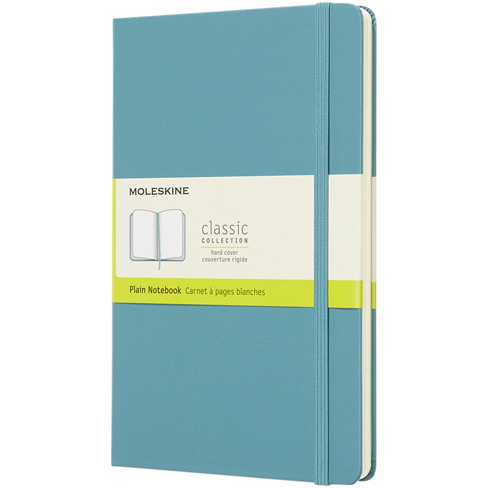 Das Moleskine Classic Hardcover Notizbuch in Größe L (13x21 cm) hat einen kartongebundenen Einband mit abgerundeten Ecken, säurefreies Papier, ein Lesezeichenband und einen elastischen Verschluss. Auf der ersten Seite finden Sie Platz für einen Hinweis „bei Verlust“ und zur Belohnung für den Finder. Auf der Rückseite befindet sich eine erweiterbare Innentasche, auf der die Geschichte von Moleskine steht. Die Tasche kann für lose Zettel und Notizen verwendet werden. Enthält 240 elfenbeinfarbene blanko Seiten. Die Seiten sind auch mit gepunktetem, kariertem und liniertem Papier erhältlich. Erhältlich in einer großen Auswahl an stilvollen, lebendigen Farben.