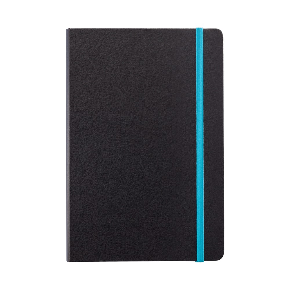 Modisches, gebundenes Notizbuch mit 80 Seiten von 80g/m² Papier. Die Seitenränder passen farblich zum Elastikband.