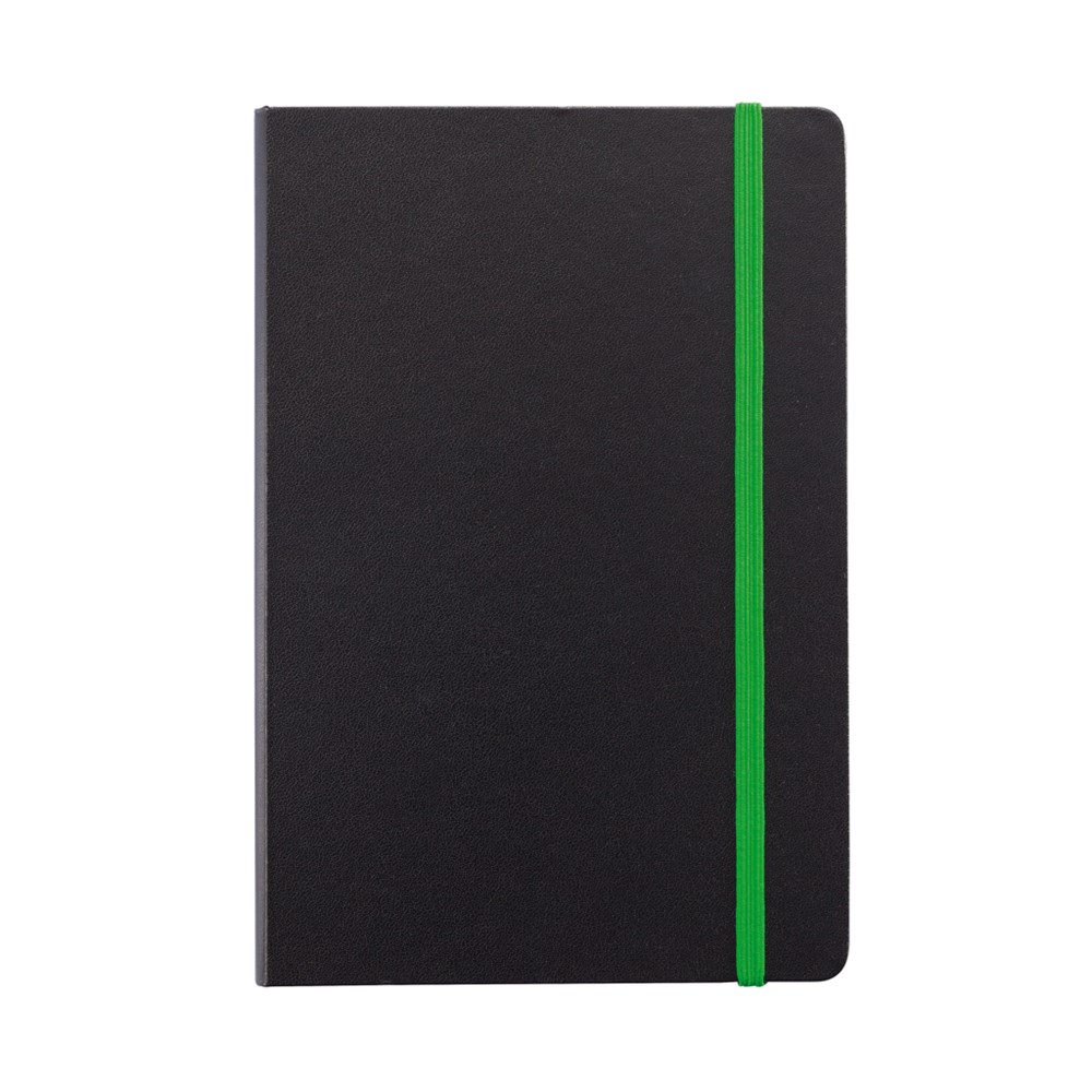 Modisches, gebundenes Notizbuch mit 80 Seiten von 80g/m² Papier. Die Seitenränder passen farblich zum Elastikband.