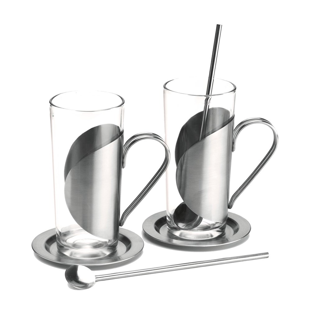Teegenuss in Schwarz und Rot. Aus den 2 langen, schlanken Teegläsern (mit Untersetzern und Trinkhalmlöffeln) schmeckt der gleich mitgelieferte Kirschtee (50 g) besonders gut. Verpackt sind alle Teile in einem schwarzen Karton mit transparentem Deckel.