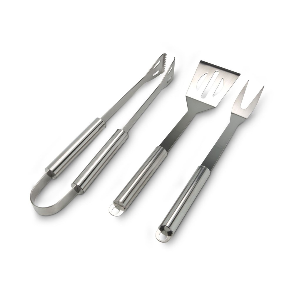 Der Aluminium-Grillkoffer von ROMINOX® enthält alles, was Sie brauchen: Wender, Gabel und Zange aus hochwertigem Edelstahl. Außerdem sind im Set: 0,2 l Chili-Grillöl und 75 g Wajos BBQ-Rub (Grillgewürzmischung). Alles zusammen liegt in einer schwarzen Schmuckwelle mit hellgrünem Dekomaterial und Klarsichtdeckel.