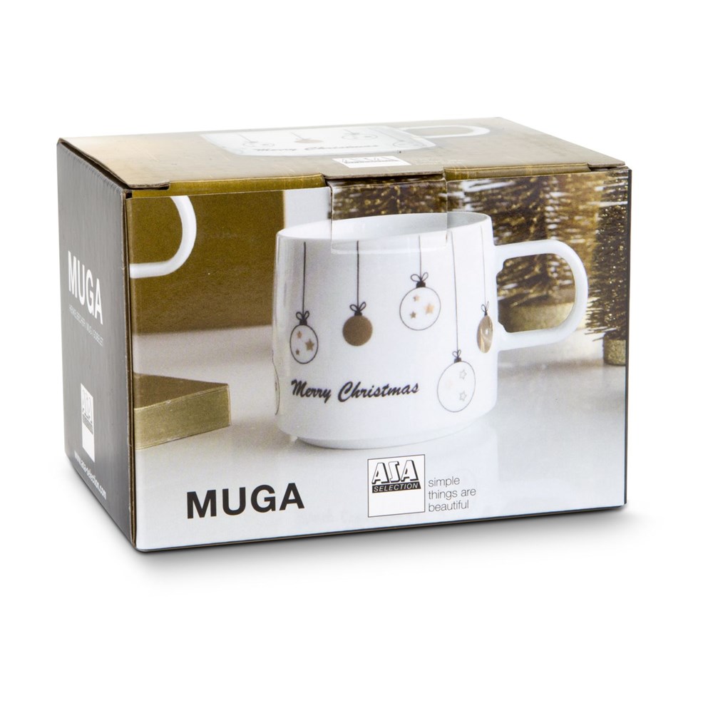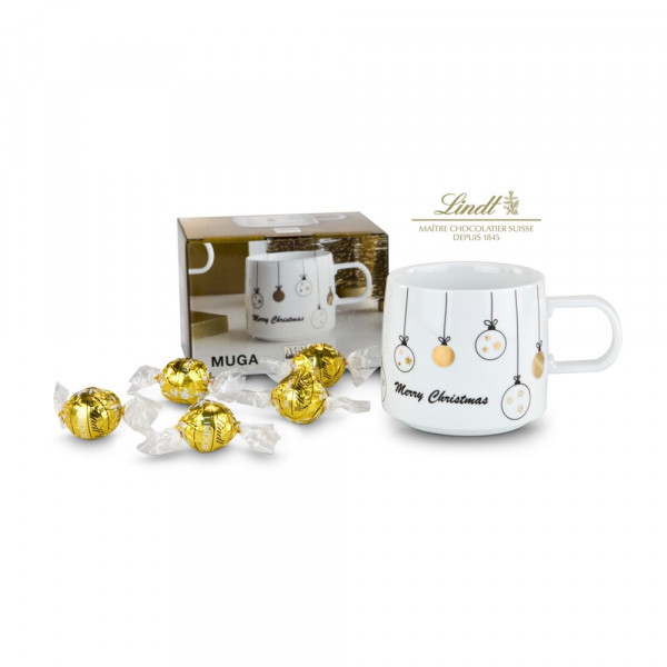 Diese edle Tasse möchte man nach Weihnachten gar nicht wirklich wegräumen. Der stimmungsvolle Porzellanbecher (400 ml) von ASA Selection ist bedruckt mit goldenen Weihnachtsbaumkugeln und kommt gefüllt mit 5 goldgewickelten Lindt Lindorkugeln zum Naschen (je 12,5 g). Ein wunderschöner Begleiter, welcher schnell zur "Lieblingstasse" in der Advents- und Weihnachtszeit wird, egal ob zuhause oder im Büro.