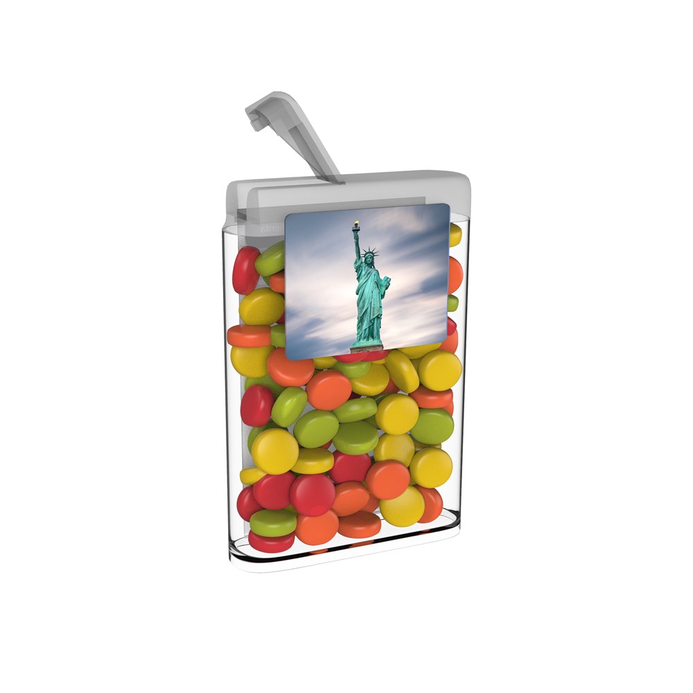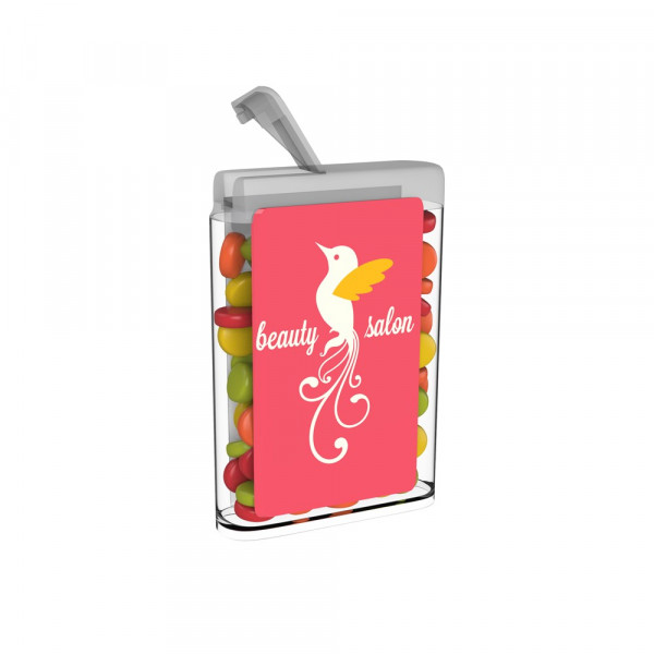 Ein farbenfrohes leckeres Geschenk, das einfach zu teilen ist. Die Drops sind in einer transparenten Box und können mit einem vollfarbigen Etikett personalisiert werden.