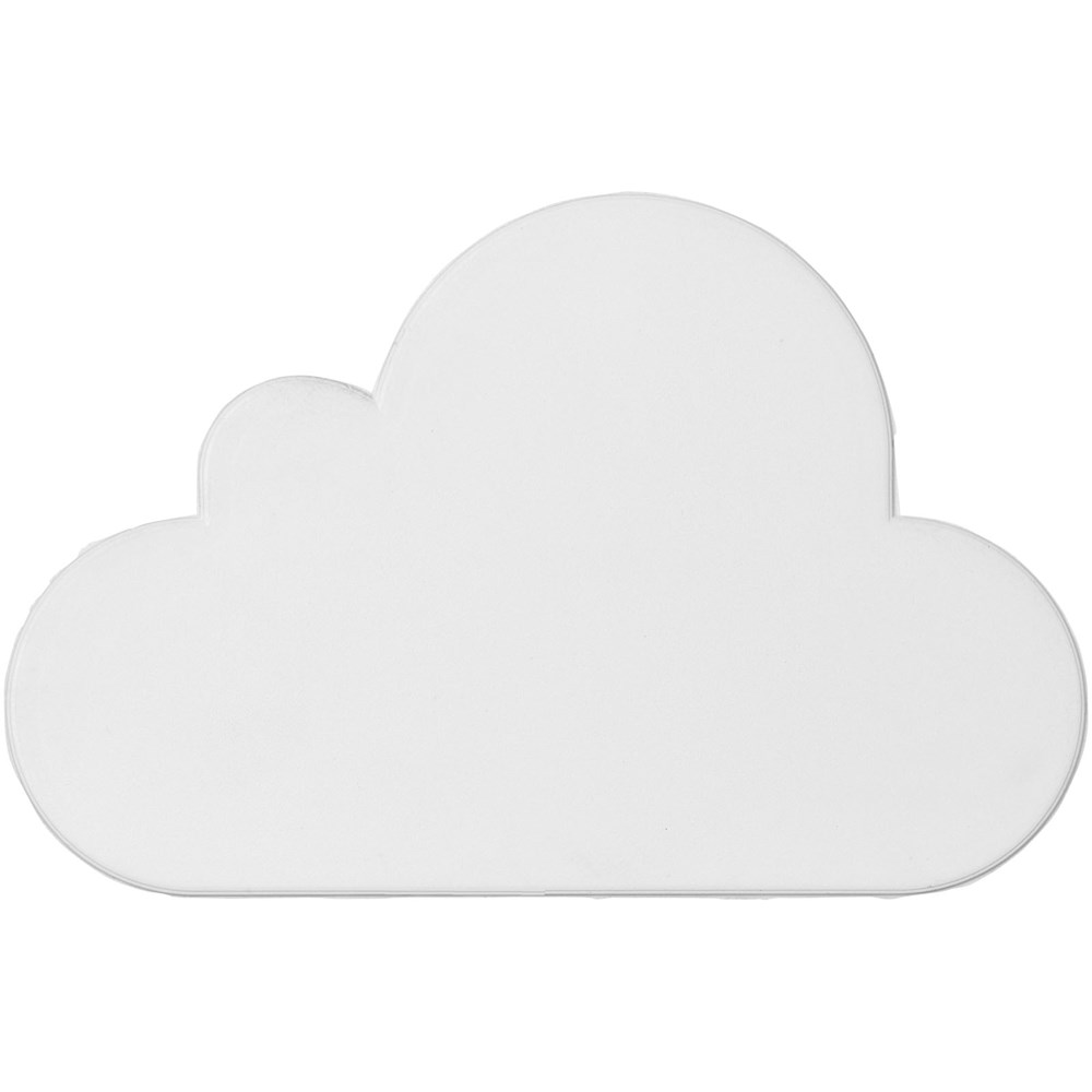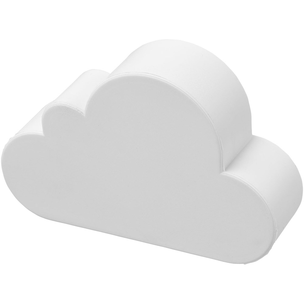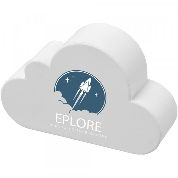Cloud-shaped stress reliever with PU foam. Stress relievers vary slightly in density, color, size, and weight due to mold process which may prevent precise and uniform imprint. Imprint may break up.