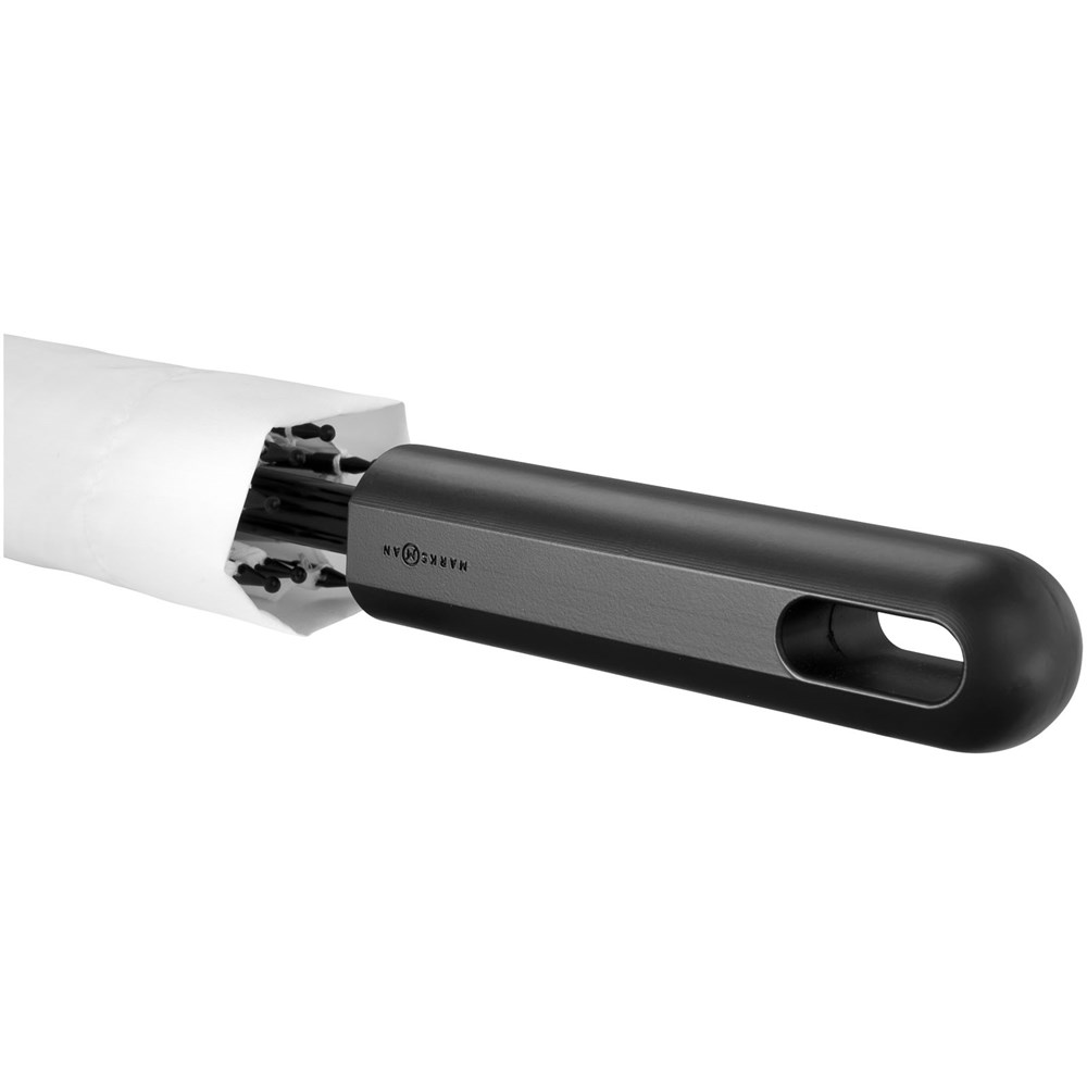 Schirm im exklusiven Design mit Metallschaft und GlasfaserSpeichen und gummibeschichtetem Kunststoffgriff. Wird mit farblich zum Baldachin passender Hülle geliefert.