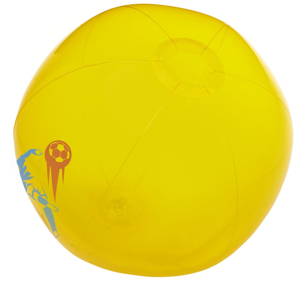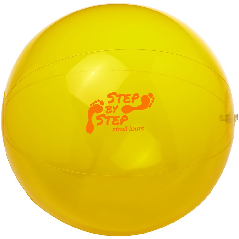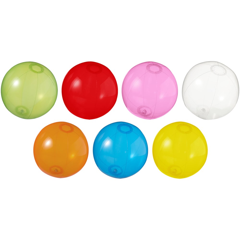 Einfarbiger, transparenter und aufblasbarer Wasserball. Im aufgeblasenen Zustand hat der Wasserball einen Durchmesser von ca. 25 cm, im unbefüllten Zustand sind es ca. 35 cm. Der erforderliche Warnhinweis ist um das Sicherheitsventil herum aufgedruckt. Große Werbeanbringungsfläche auf den Segmenten für maximale Sichtbarkeit des Logos. Entspricht EN-71, REACH und POP.
