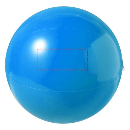 Einfarbiger, aufblasbarer Wasserball. Im aufgeblasenen Zustand hat der Wasserball einen Durchmesser von ca. 25 cm, im unbefüllten Zustand sind es ca. 35 cm. Der erforderliche Warnhinweis ist um das Sicherheitsventil herum aufgedruckt. Große Werbeanbringungsfläche auf den Segmenten für maximale Sichtbarkeit des Logos. Entspricht EN-71, REACH und POP.