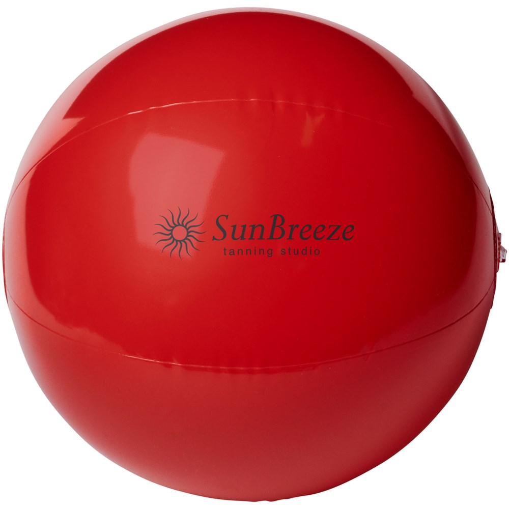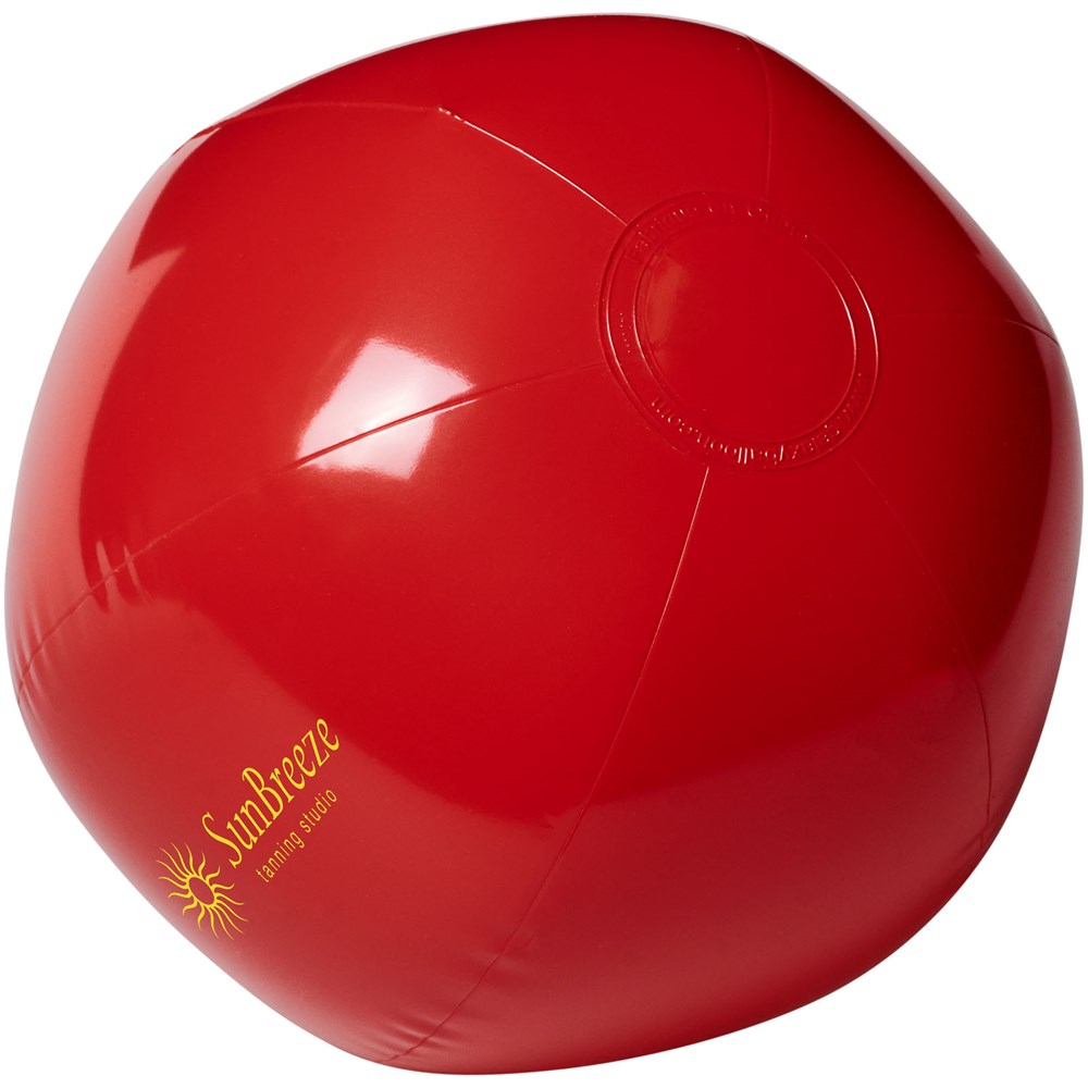 Einfarbiger, aufblasbarer Wasserball. Im aufgeblasenen Zustand hat der Wasserball einen Durchmesser von ca. 25 cm, im unbefüllten Zustand sind es ca. 35 cm. Der erforderliche Warnhinweis ist um das Sicherheitsventil herum aufgedruckt. Große Werbeanbringungsfläche auf den Segmenten für maximale Sichtbarkeit des Logos. Entspricht EN-71, REACH und POP.