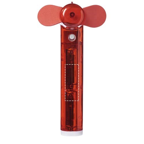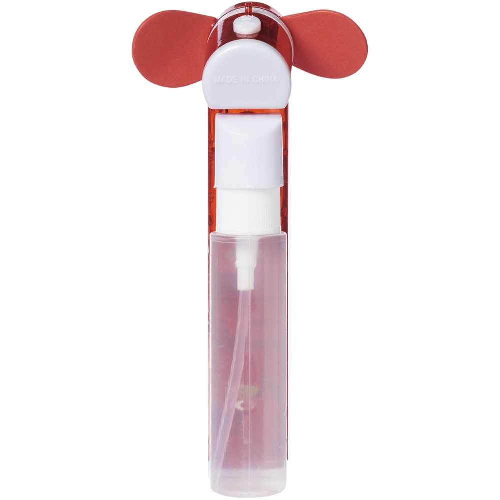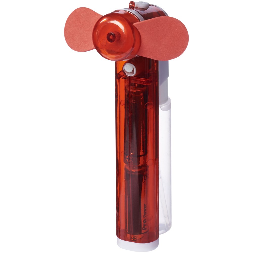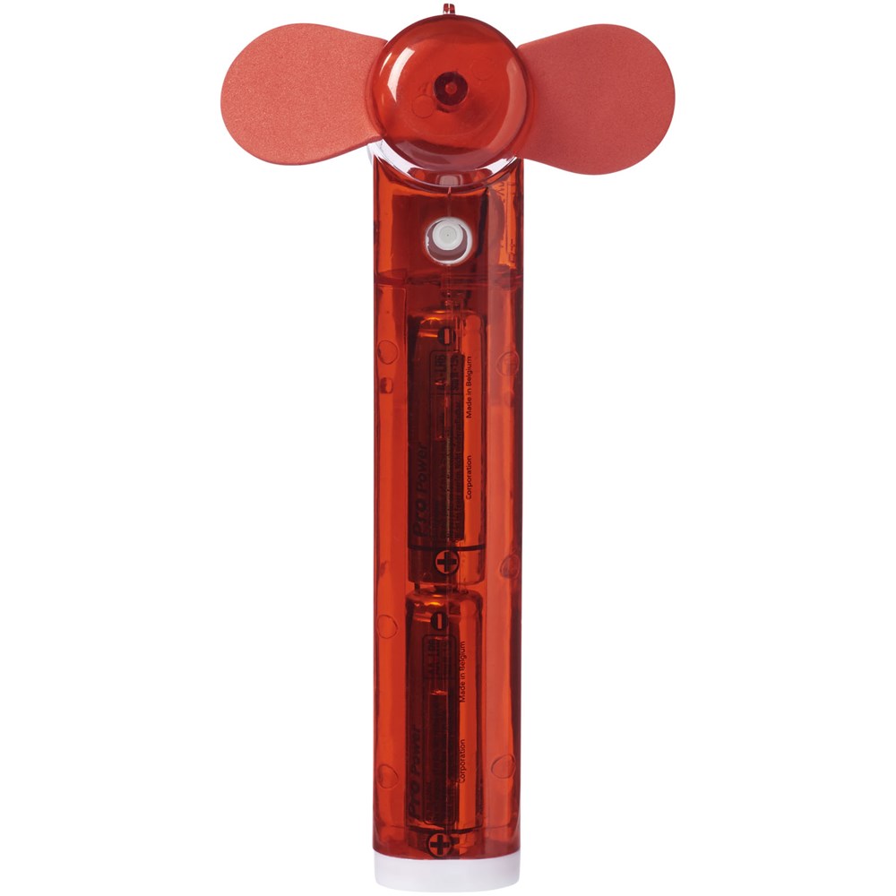 Taschenventilator mit kleinem Wasserbehälter und Spray für zusätzliche Erleichterung von der Hitze. 2x AA Batterien enthalten.