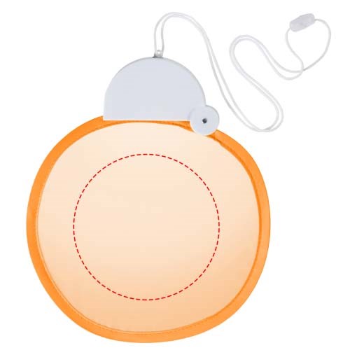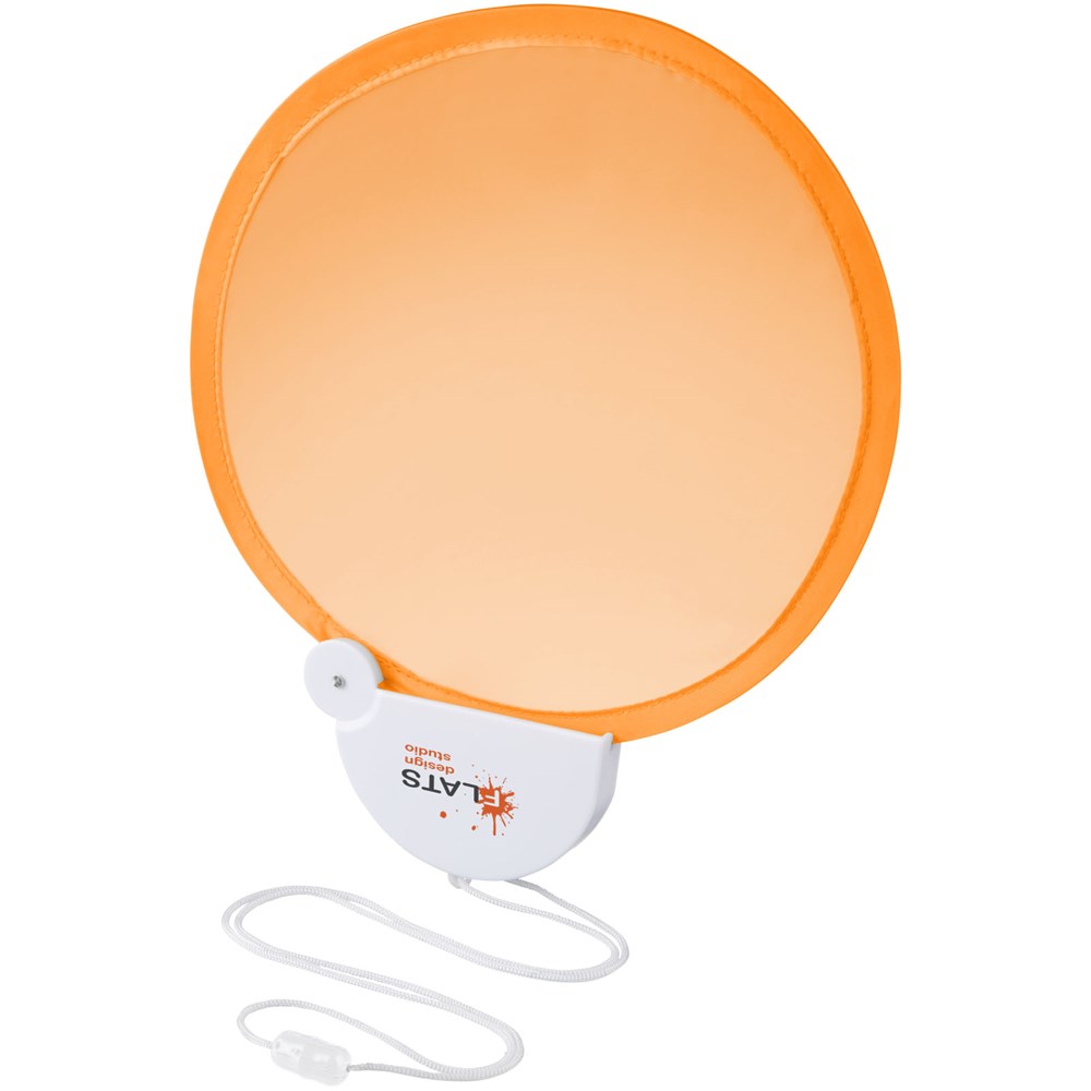 Flexibler Nylon Fächer, der in das Kunststoffgehäuse zusammengeklappt werden kann. Inkl. Umhängekordel.