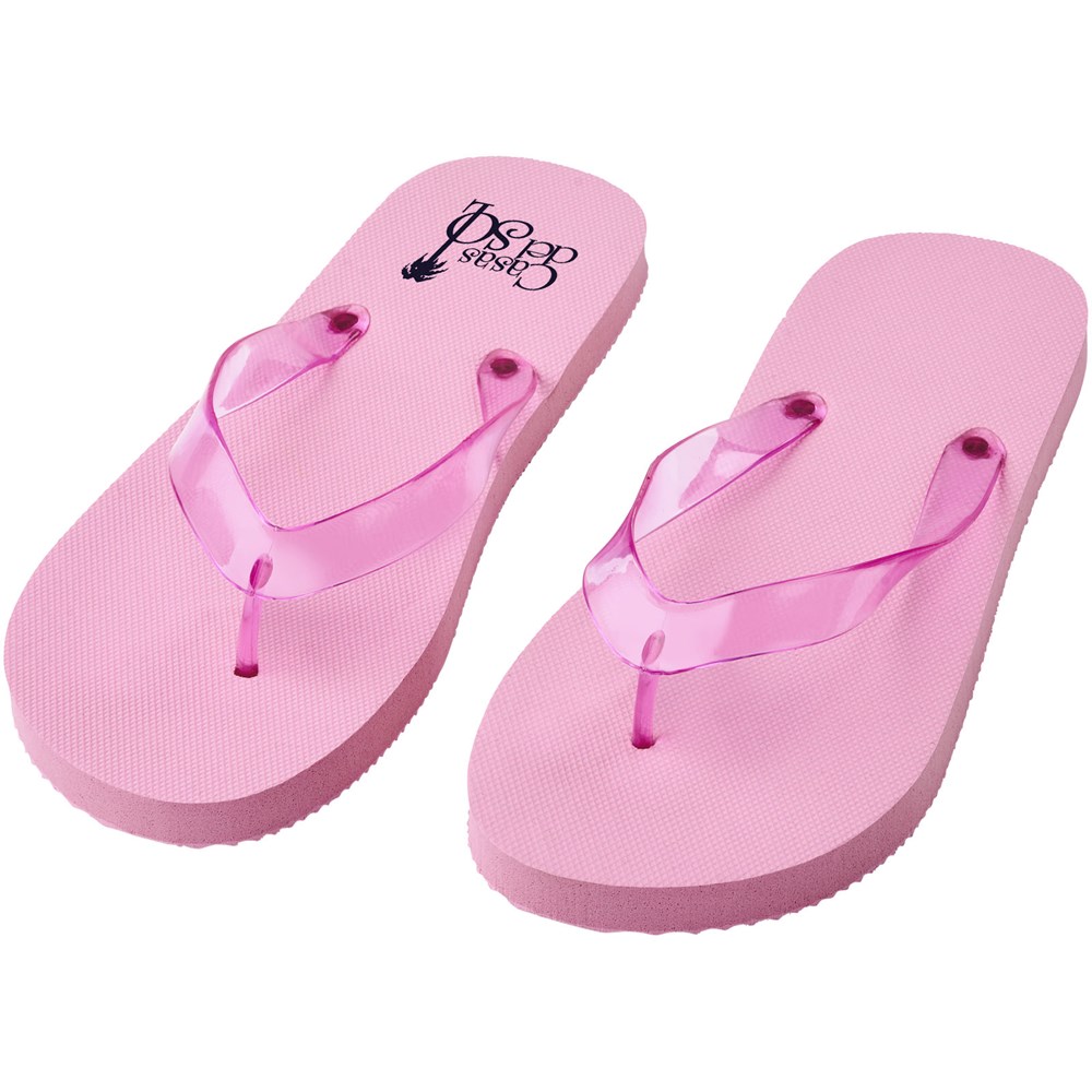 Set mit bequemen Strandschuhen in einer großen Farbauswahl mit Polyethylensohle und PVC-Band. Erhältlich in zwei verschiedenen Größen: M 36-38 und L: 42-44. Dies ist ein bewährtes Geschenk in der Sommersaison. Aufgrund der Art und Verwendung des Produkts ist jedes verwendete Logo einer Abnutzung ausgesetzt.