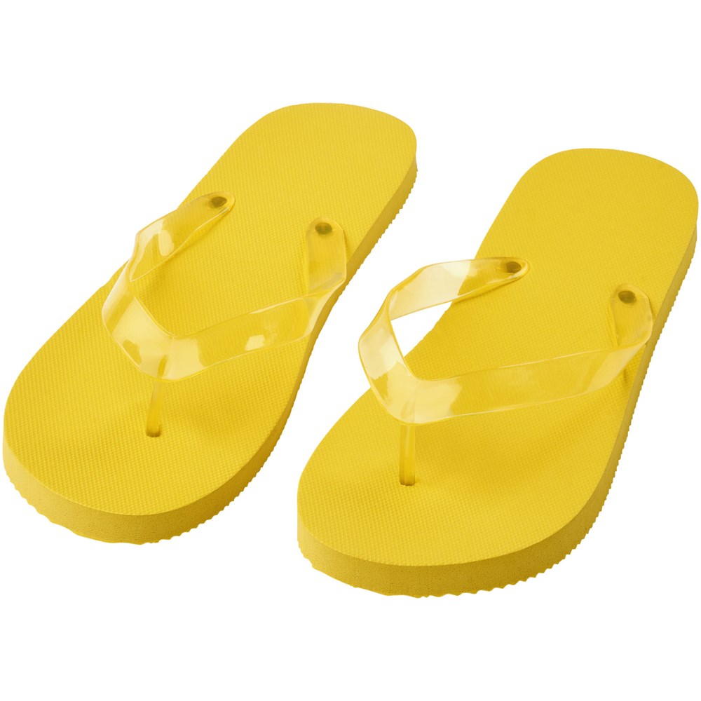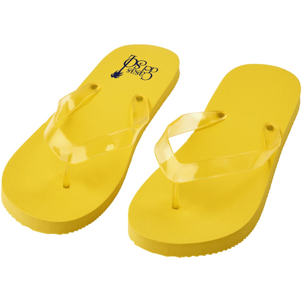 Set mit bequemen Strandschuhen in einer großen Farbauswahl mit Polyethylensohle und PVC-Band. Erhältlich in zwei verschiedenen Größen: M 36-38 und L: 42-44. Dies ist ein bewährtes Geschenk in der Sommersaison. Aufgrund der Art und Verwendung des Produkts ist jedes verwendete Logo einer Abnutzung ausgesetzt.