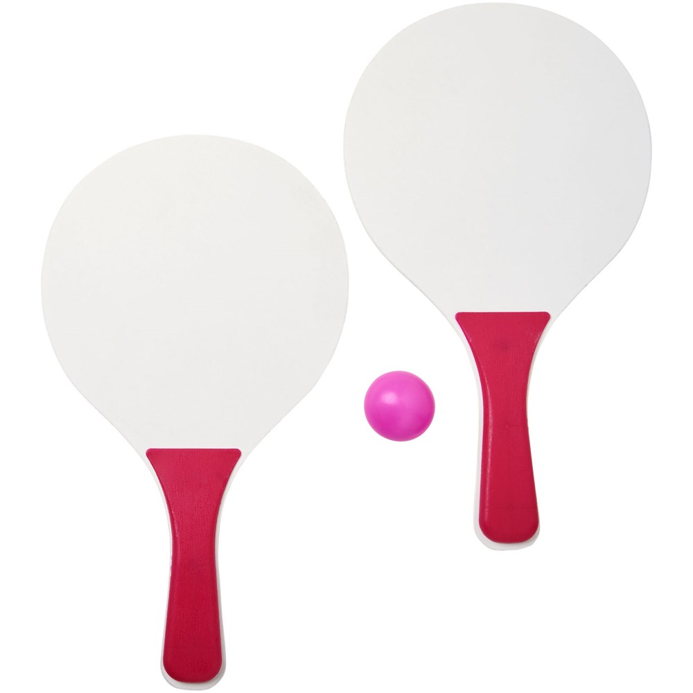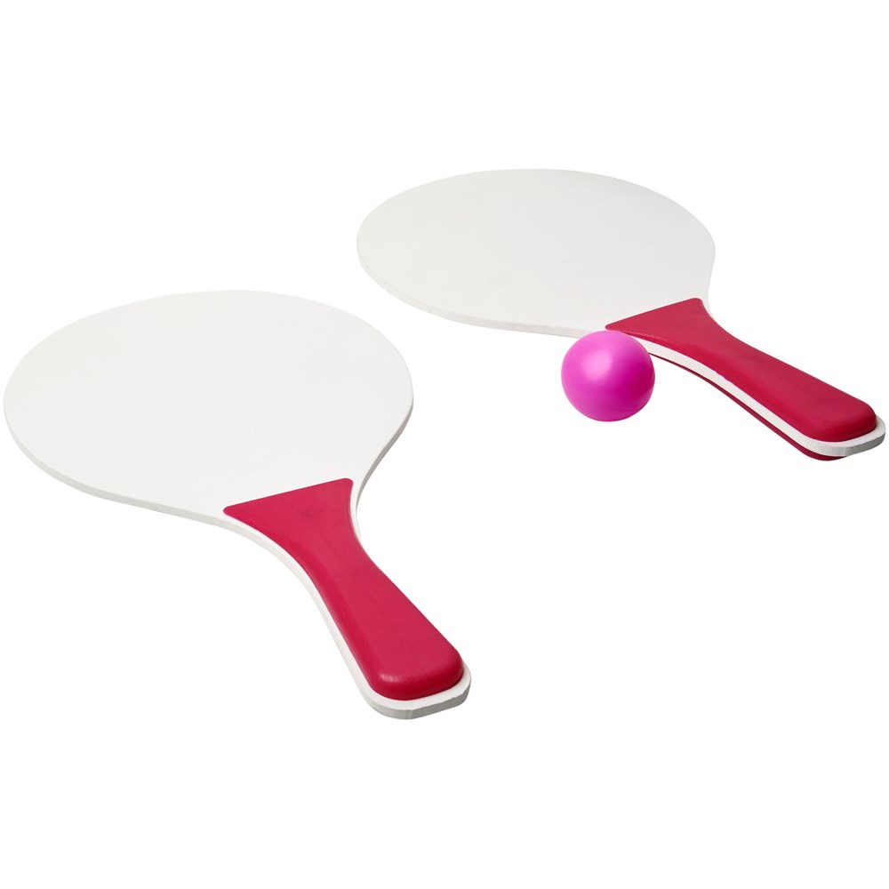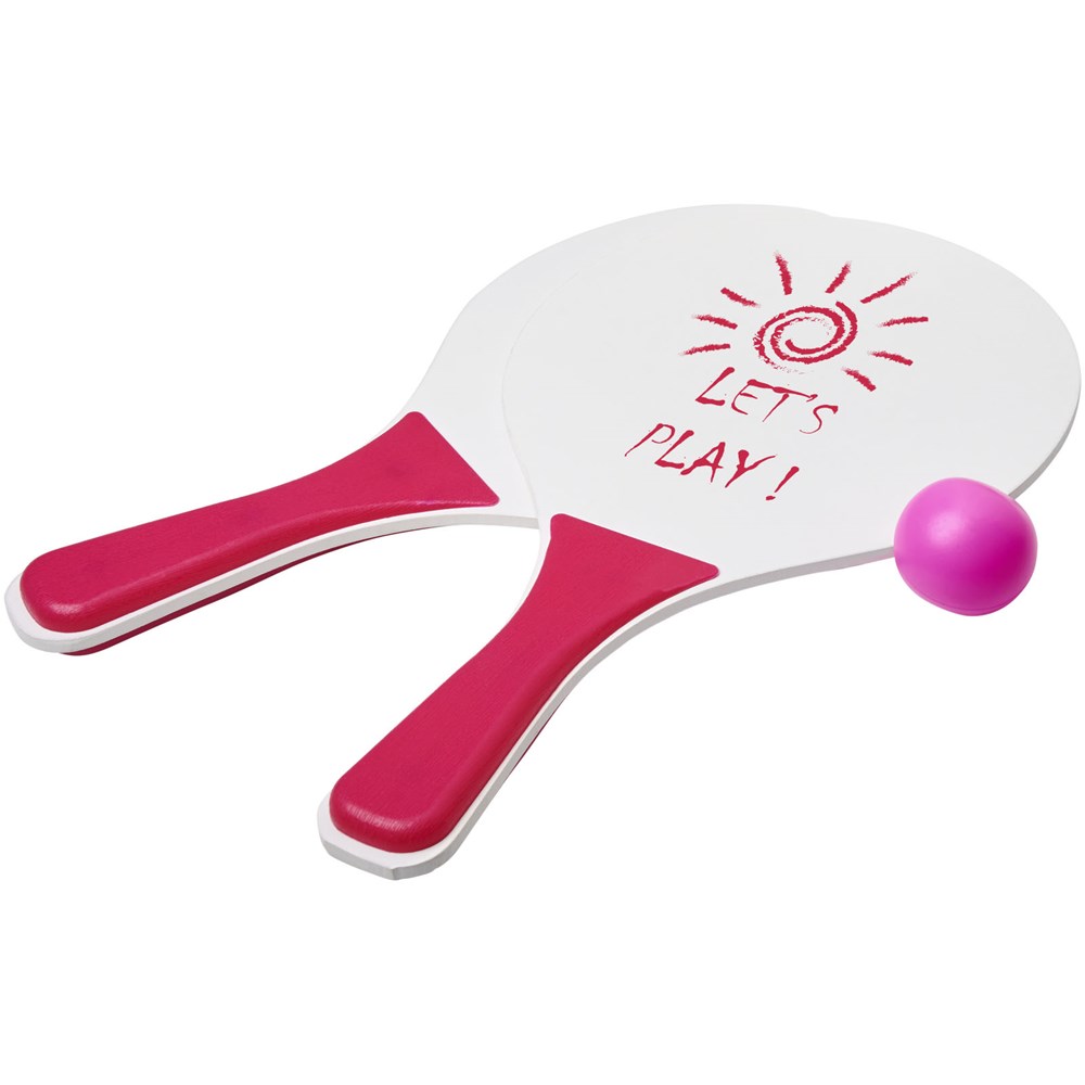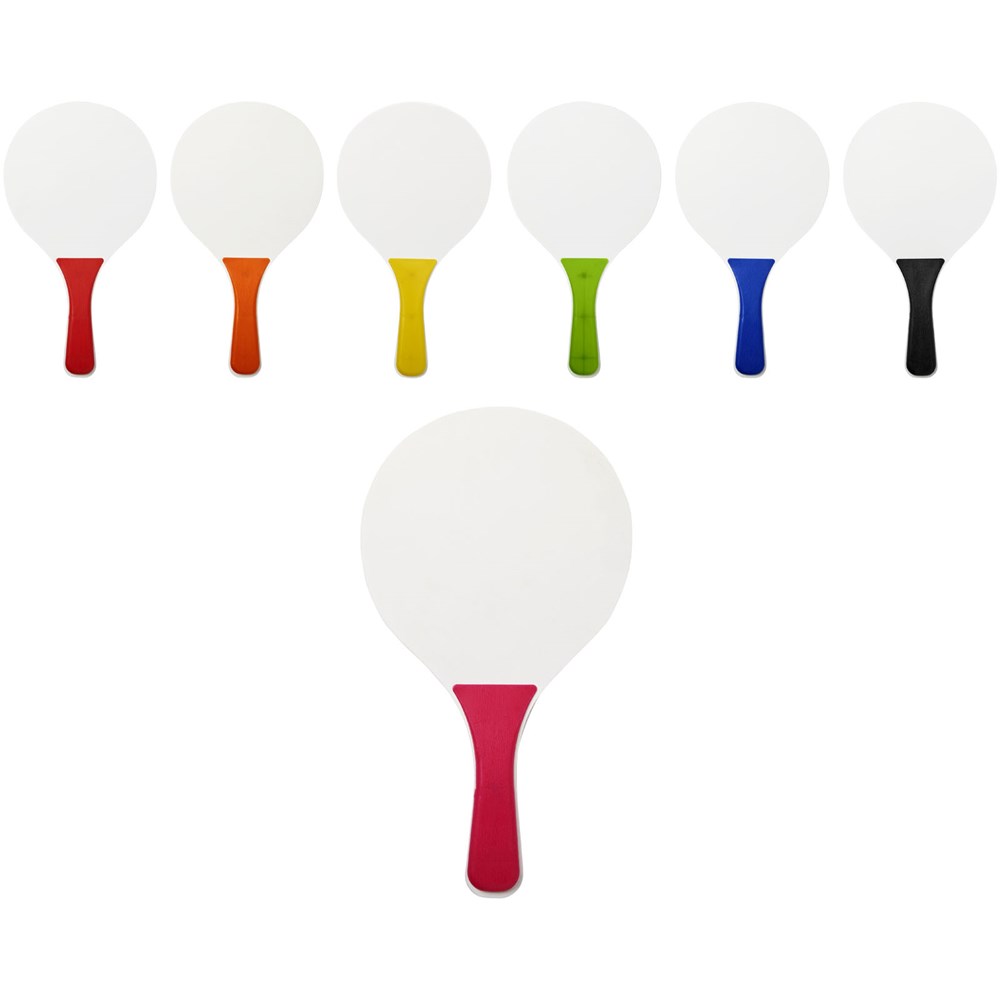 Immer Spaß mit diesem Strandspiel-Set, das in einer Vielzahl von Farben angeboten wird. Dieses strapazierfähige Strandspiel-Set ist aus MDF-Holz mit farbigem PP-Griff gefertigt. Zusammen mit einem weichen Ball in gleicher Farbe in einer Netzpackung für einfachen Transport zu einem lustigen Strandtag verpackt.