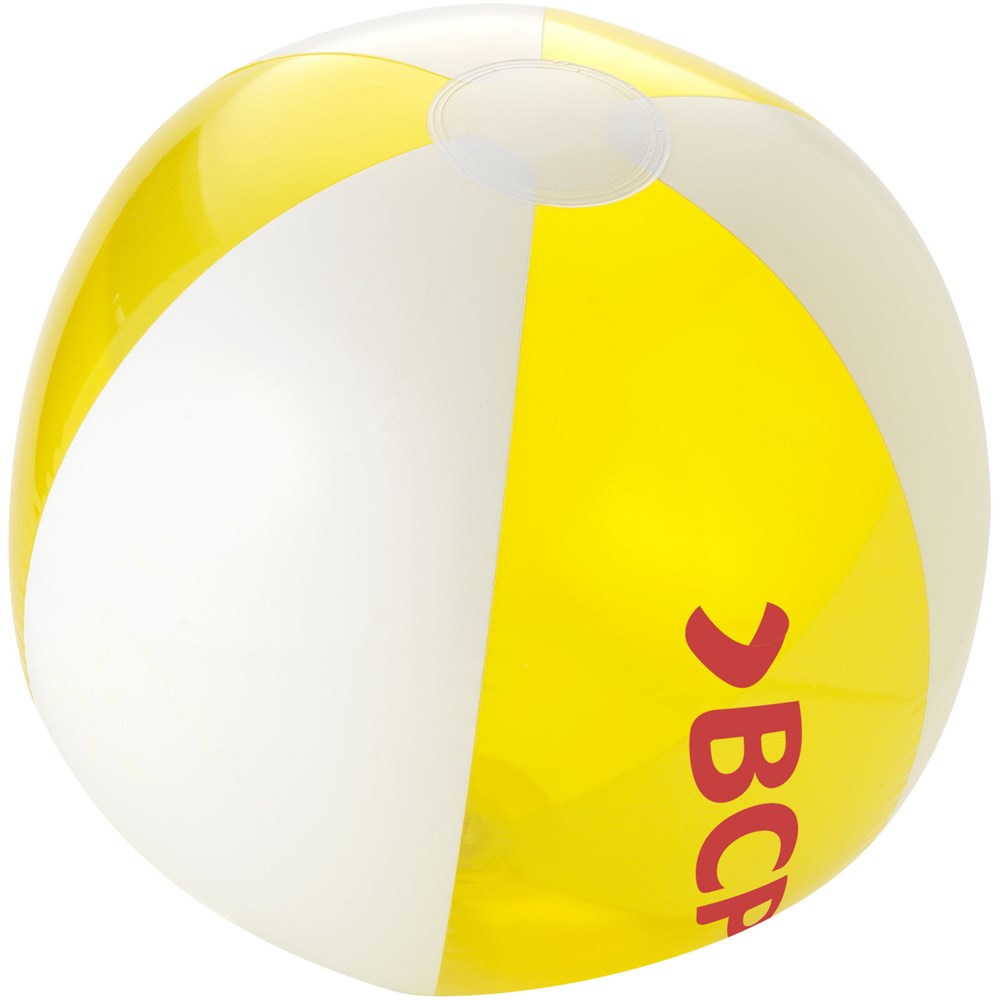 Zweifarbiger, transparenter und aufblasbarer Wasserball. Im aufgeblasenen Zustand hat der Wasserball einen Durchmesser von ca. 25 cm, im unbefüllten Zustand sind es ca. 35 cm. Der erforderliche Warnhinweis ist um das Sicherheitsventil herum aufgedruckt. Großer Große Werbeanbringungsfläche auf den Segmenten für maximale Sichtbarkeit des Logos. Entspricht EN-71, REACH und POP.