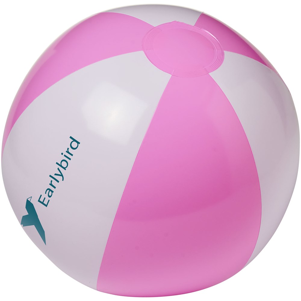 Zweifarbiger, aufblasbarer Wasserball. Im aufgeblasenen Zustand hat der Wasserball einen Durchmesser von ca. 25 cm, im unbefüllten Zustand sind es ca. 35 cm. Der erforderliche Warnhinweis ist um das Sicherheitsventil herum aufgedruckt. Große Werbeanbringungsfläche auf den Segmenten für maximale Sichtbarkeit des Logos. Entspricht EN-71, REACH und POP.