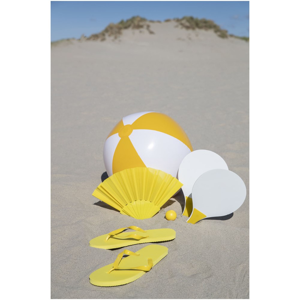 Zweifarbiger, aufblasbarer Wasserball. Im aufgeblasenen Zustand hat der Wasserball einen Durchmesser von ca. 40 cm, im unbefüllten Zustand sind es ca. 52 cm. Der erforderliche Warnhinweis ist um das Sicherheitsventil herum aufgedruckt. Große Werbeanbringungsfläche auf den Segmenten für maximale Sichtbarkeit des Logos. Entspricht EN-71, REACH und POP.