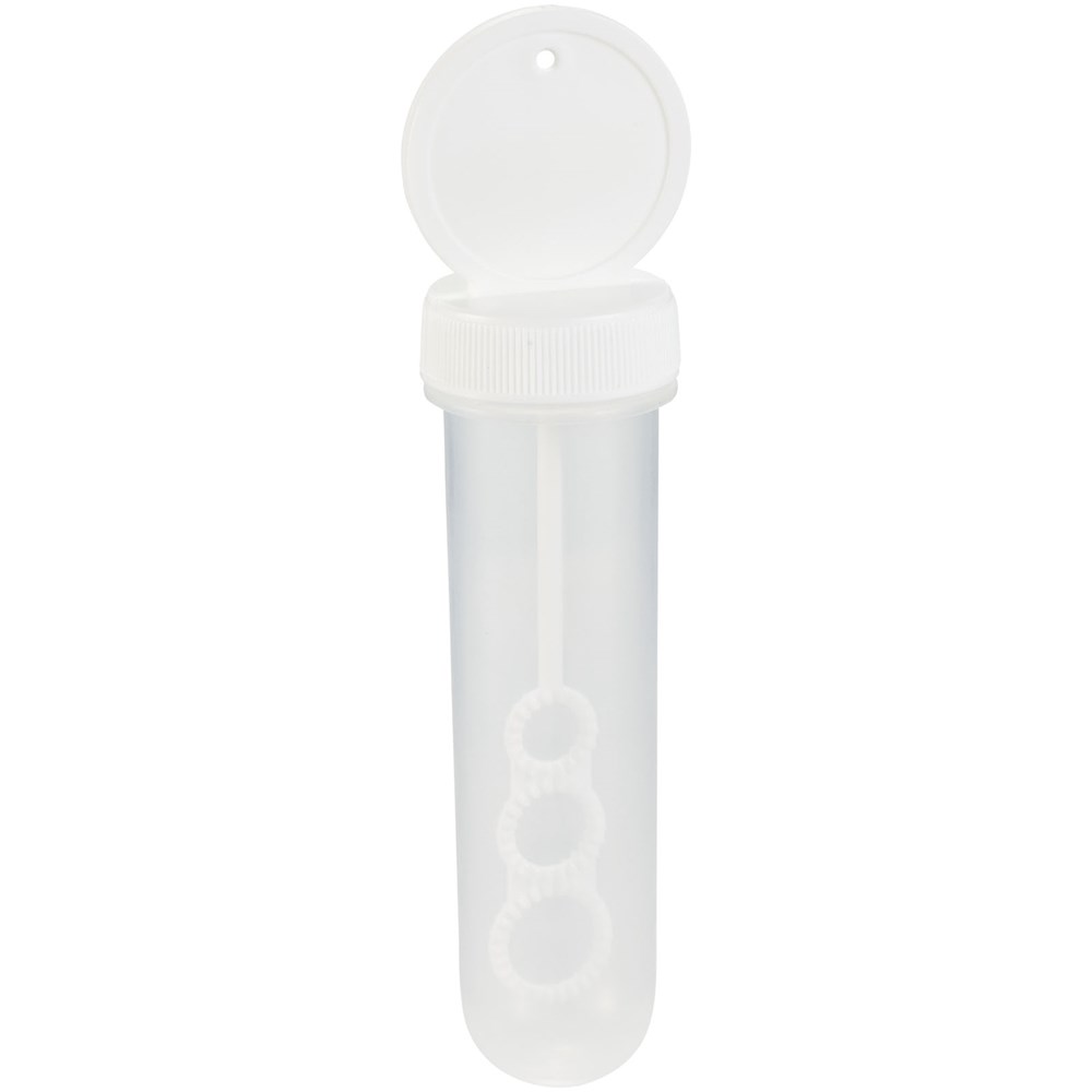 Seifenblasen Röhrchen mit abnehmbarer Kappe und Stab. Inkl. 30 ml Flüssigkeit.