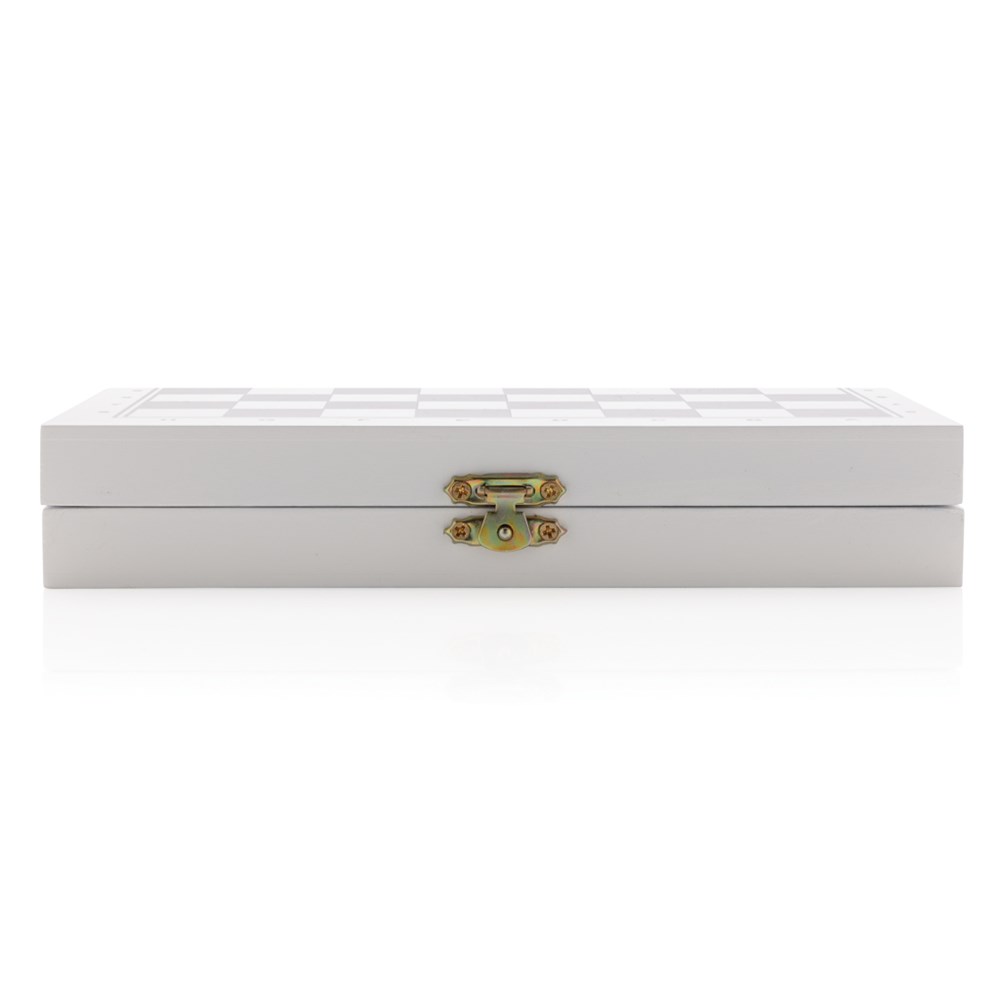 Warum nur ein Spiel spielen wenn man gleich 3 spielen kann?! Dieses 3-in-1 Set mit Schach, Dame und Backgammon bietet endlosen Spielspaß. In der Box befinden das zweiseitige Spielbrett, 2 Würfel, 30 Backgammon-Steine sowie alle Schachfiguren. Die handgefertigte Box, daher nicht immer ganz perfekt, verleiht dem Set so einen gewissen nostalgischen Charme.