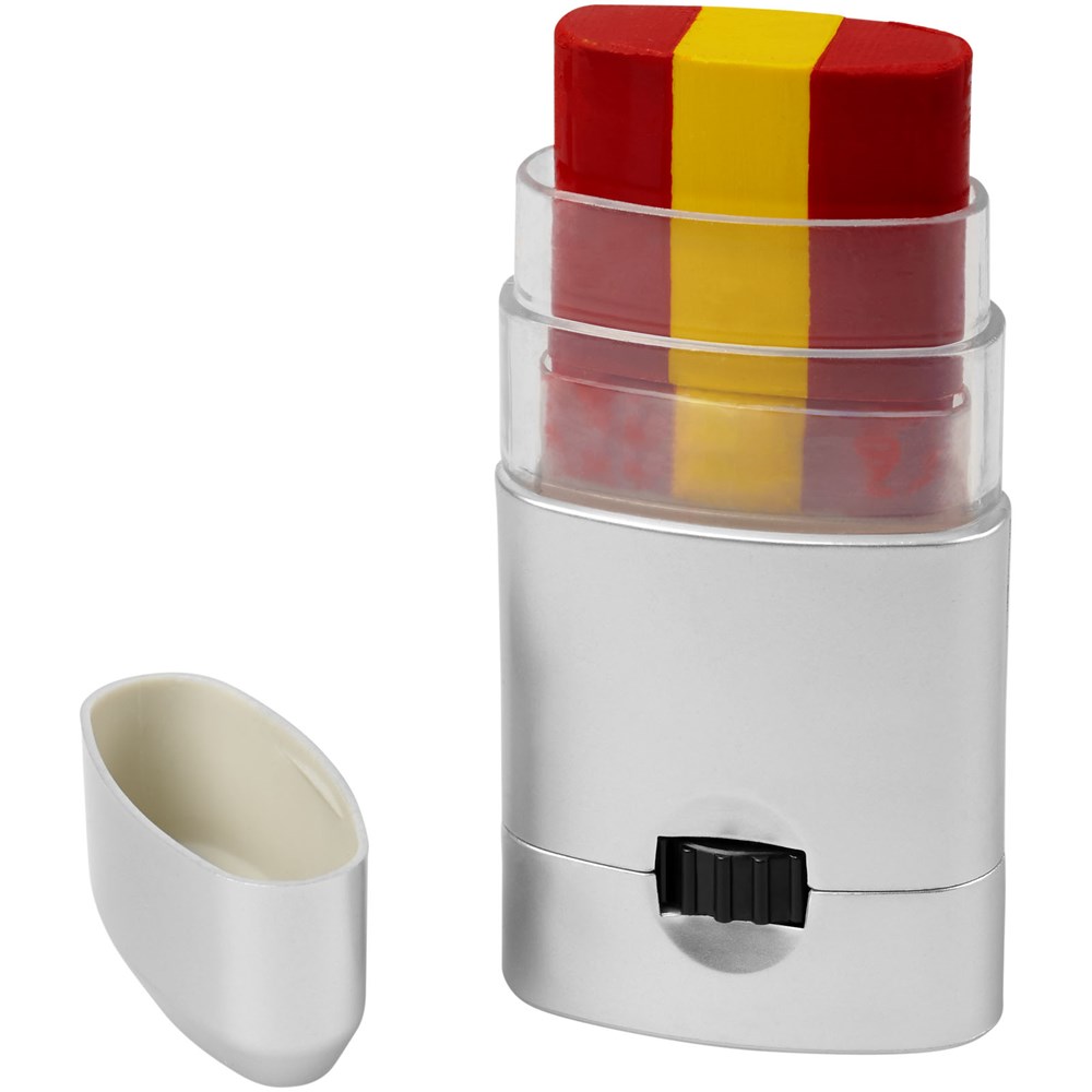 Leicht zu reinigende Körperfarbe in einer Vielzahl von Farbkombinationen, welche die Länder Frankreich, Deutschland, Italien, Niederlande, Belgien, Portugal, Spanien, Österreich, Dänemark, Schweiz, Schweden und Polen repräsentieren. Kann auch auf das Gesicht aufgetragen und mit einem Make-up-Reiniger oder mit Wasser und Seife entfernt werden. Hergestellt unter GMP-Konformitätsanforderungen (Good Manufacturing Practices), erfüllt die EU-Verordnungen über kosmetische Mittel (Verordnung (EC) Nr. 1223/2009). CPNP-Registrierungsnummer 3260279.