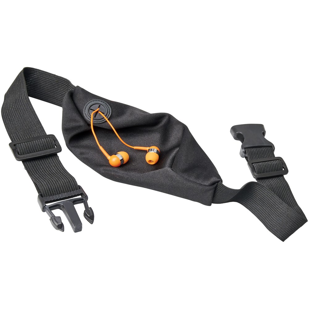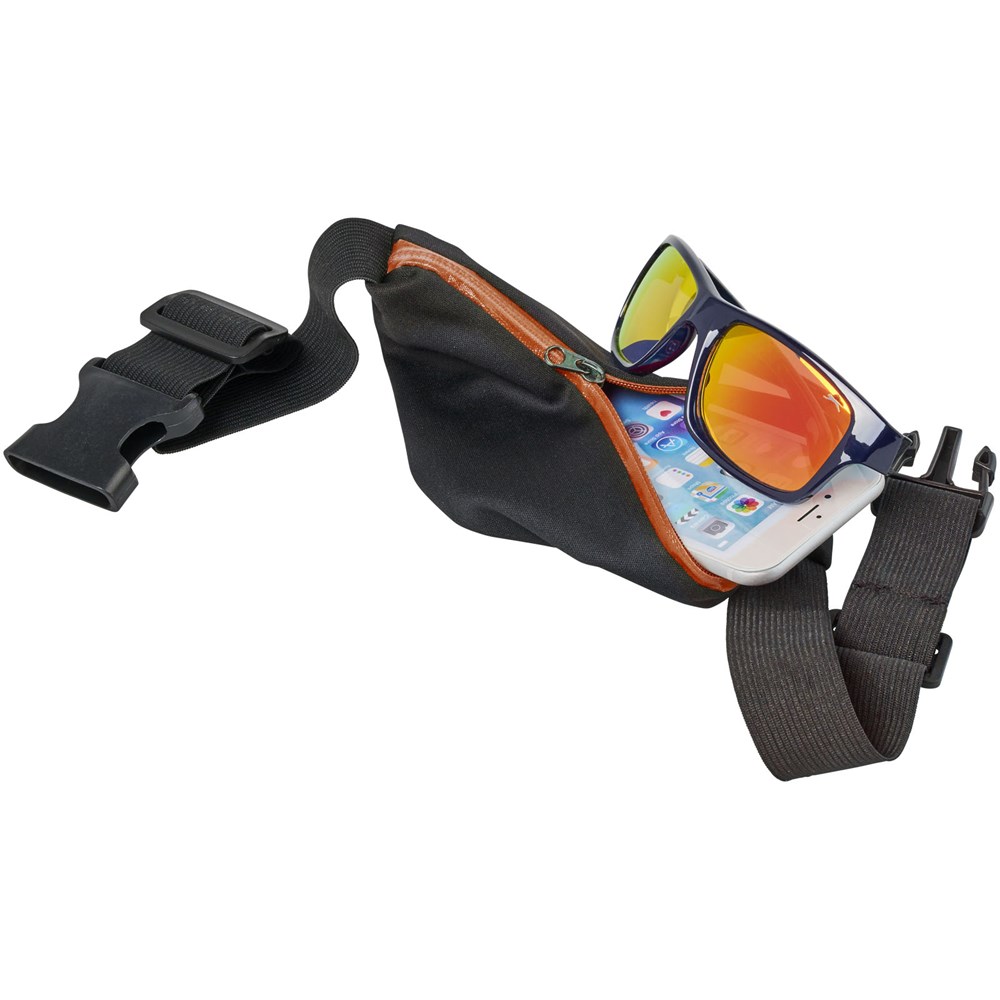 Flexible Sporttasche mit farbigem Reißverschluss und Kopfhörerausgang. Das Elastan-Material und der elastische Bund mit Schnallenverschluss ermöglichen Flexibilität beim Training oder bei jeder anderen Outdoor-Aktivität. Große Dekorationsfläche auf der Vorderseite.