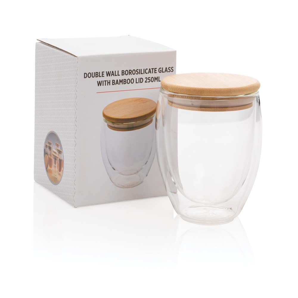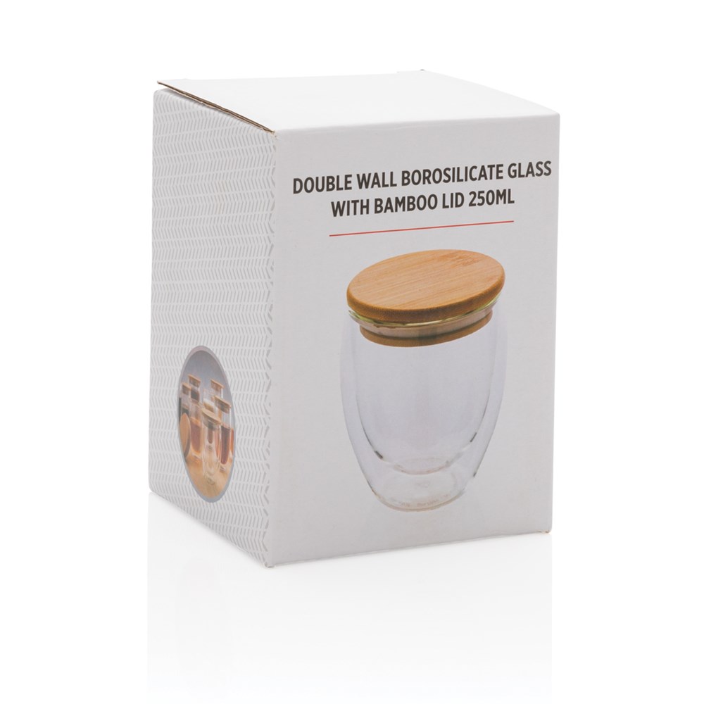 Doppelwandiges Borosilikatglas mit Bambusdeckel 250ml
