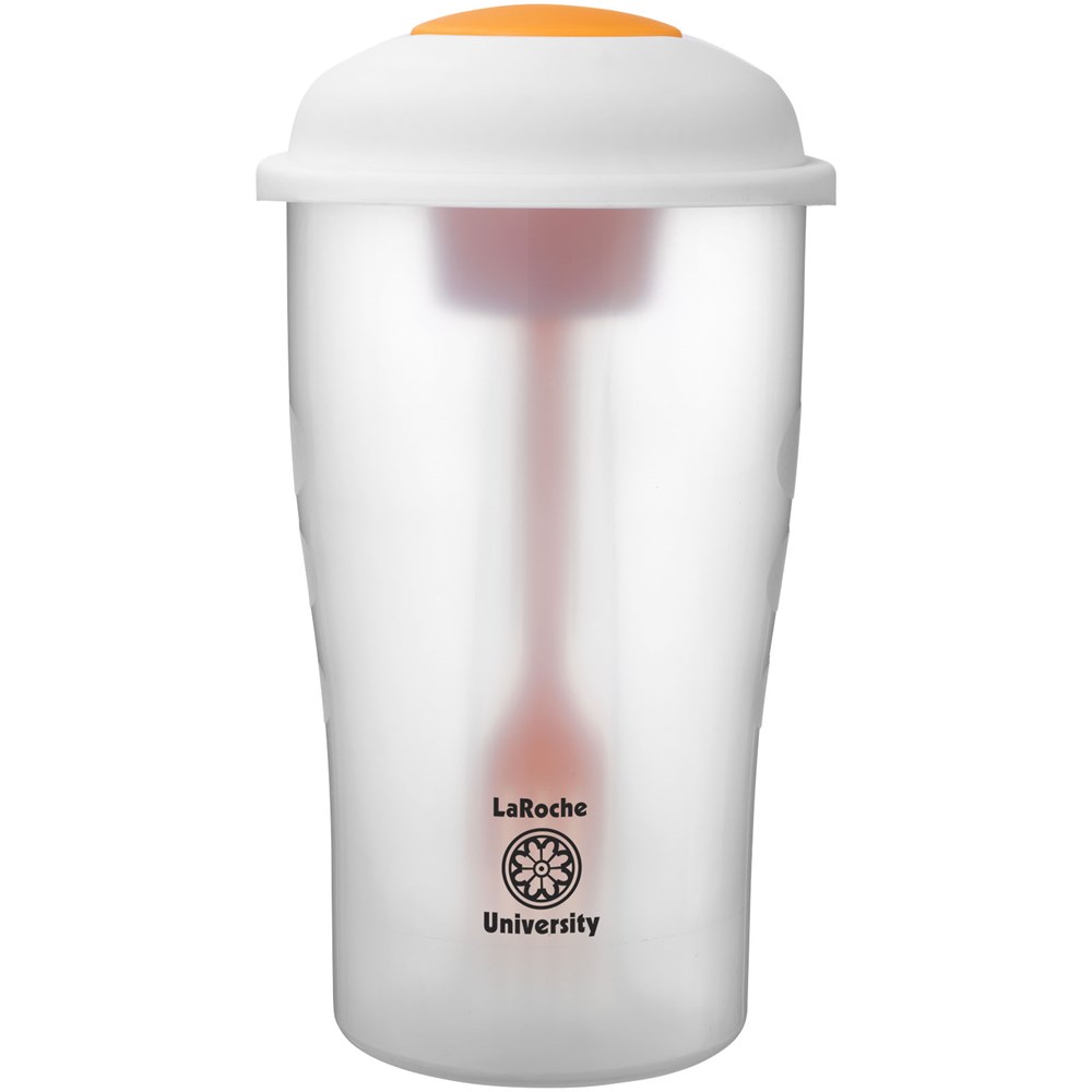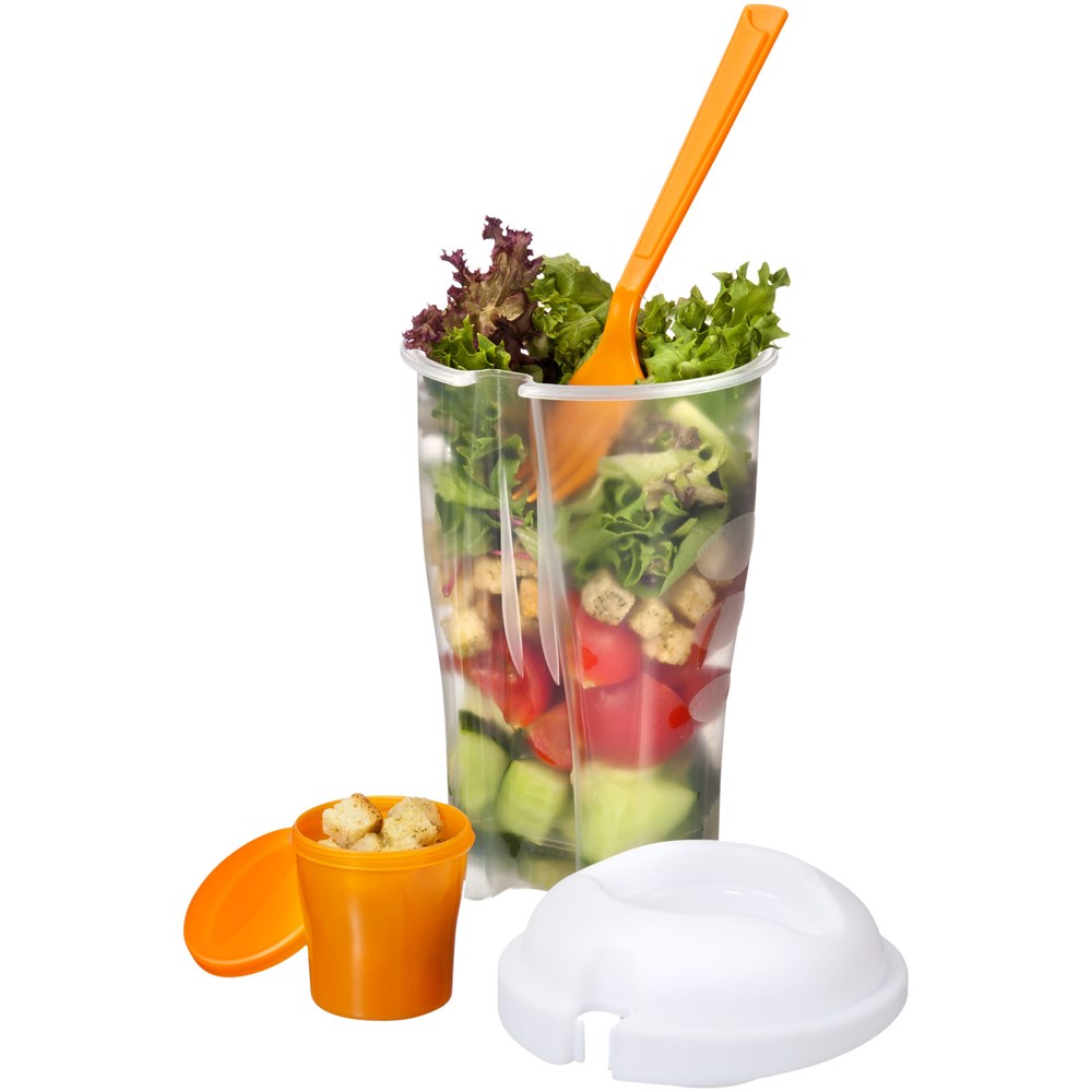 Praktische Aufbewahrung für Salate unterwegs. Mit Gabel und herausnehmbarem Behälter, der für Dressings und Garnierungen geeignet ist.