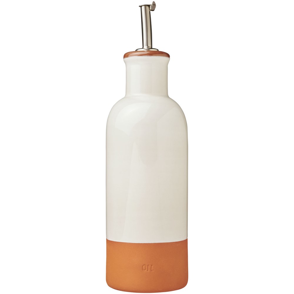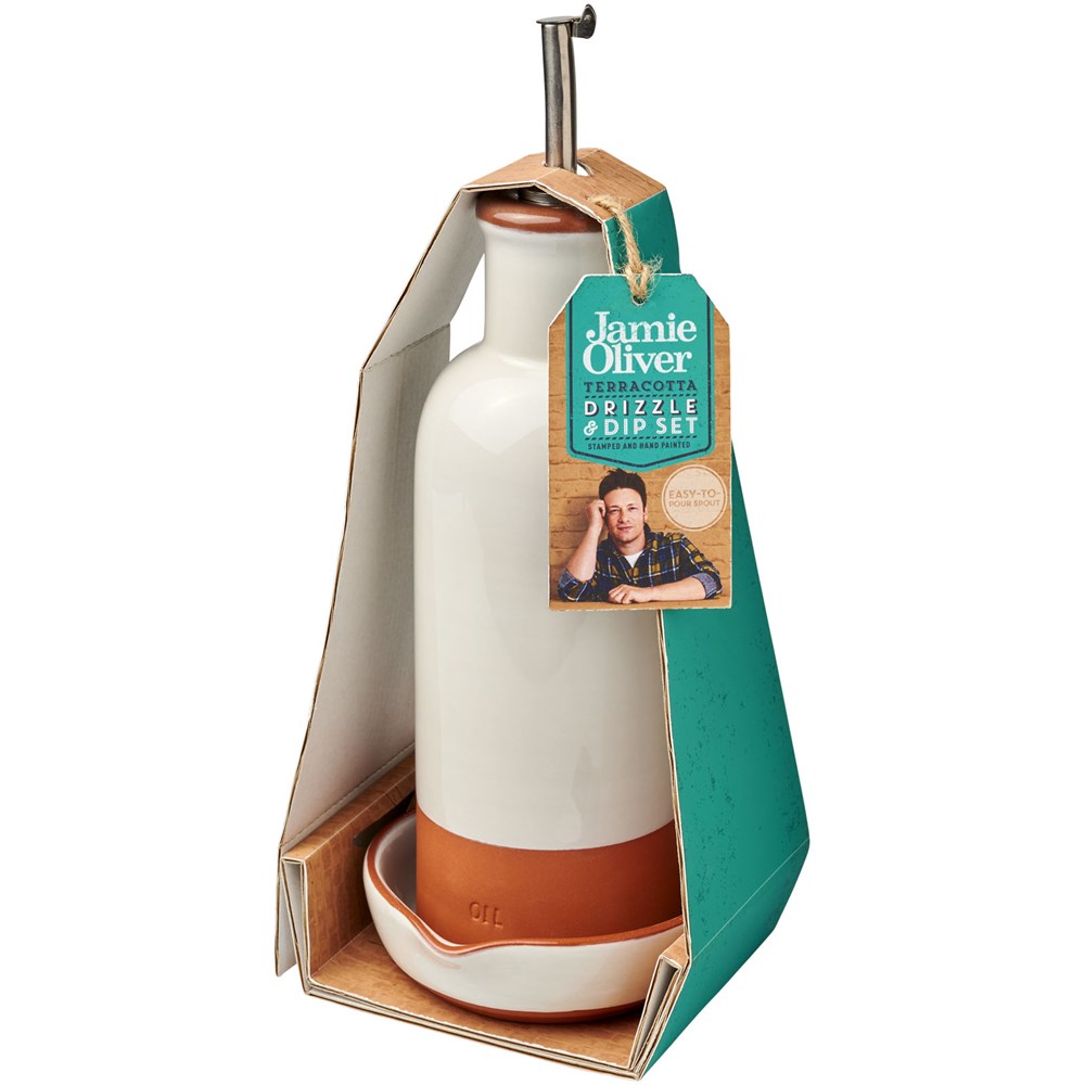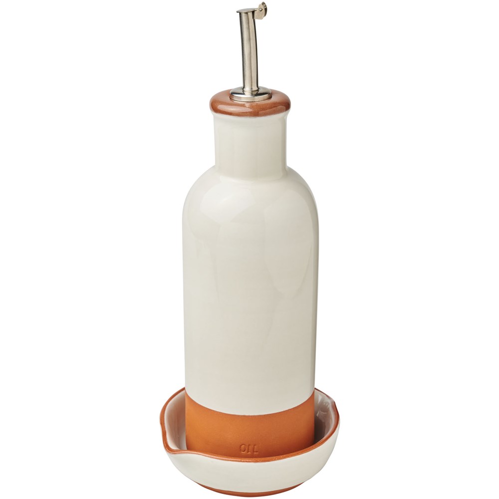 Terracotta-Sprenkler und Dip-Set. Handbemalter und geprägter Sprenkler und Dip-Set. Der Sprenkler ist ideal zum Anrichten von Salaten und Suppen, und die passende rustikale Schale (4 cm x Ø 10 cm) ist perfekt zum Dippen von Brot. Terrakotta, Keramik und Edelstahl.