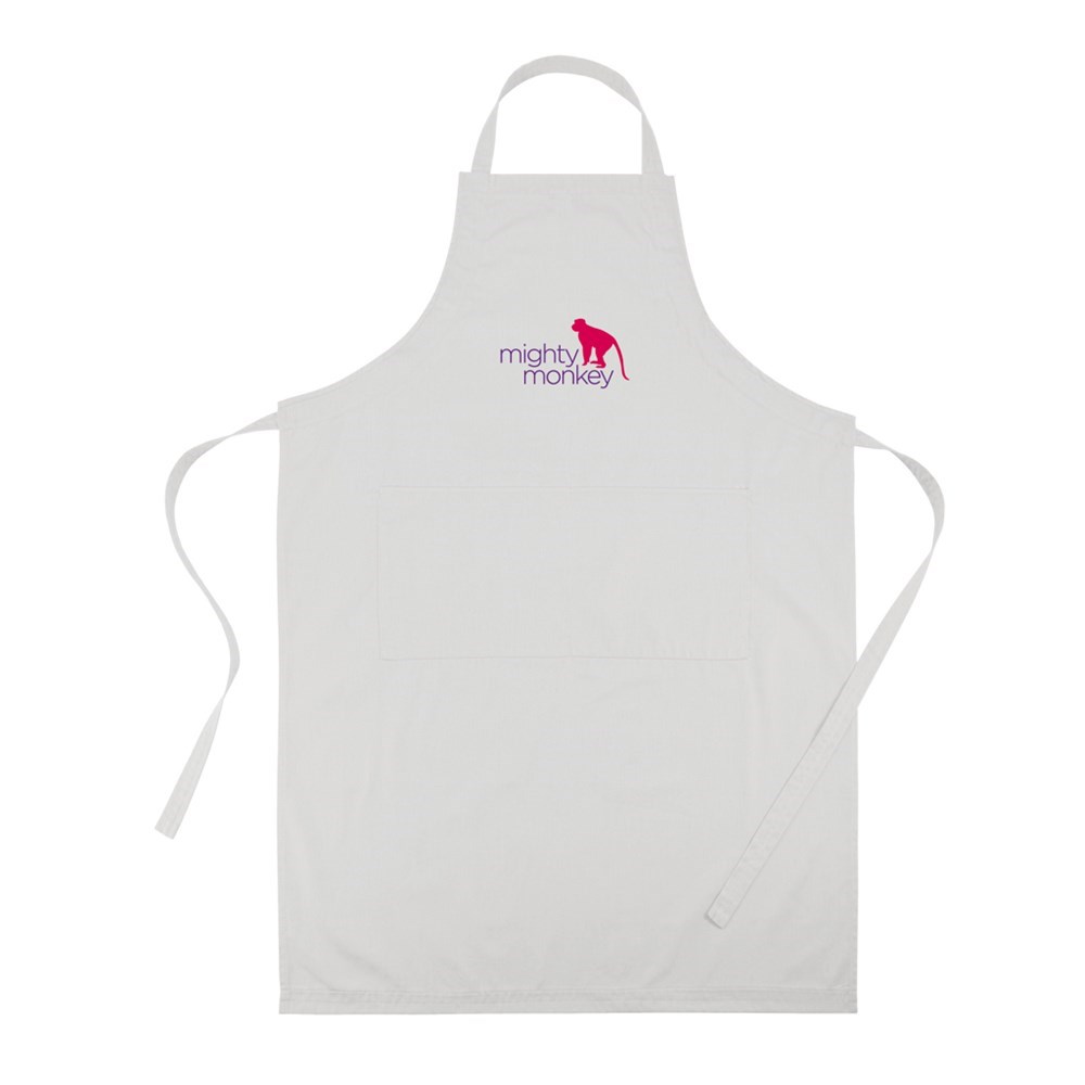 Hochwertige Küchenschürze mit 2 Taschen, im Nacken verstellbar, Material: 35% Baumwolle und 65% Polyester.